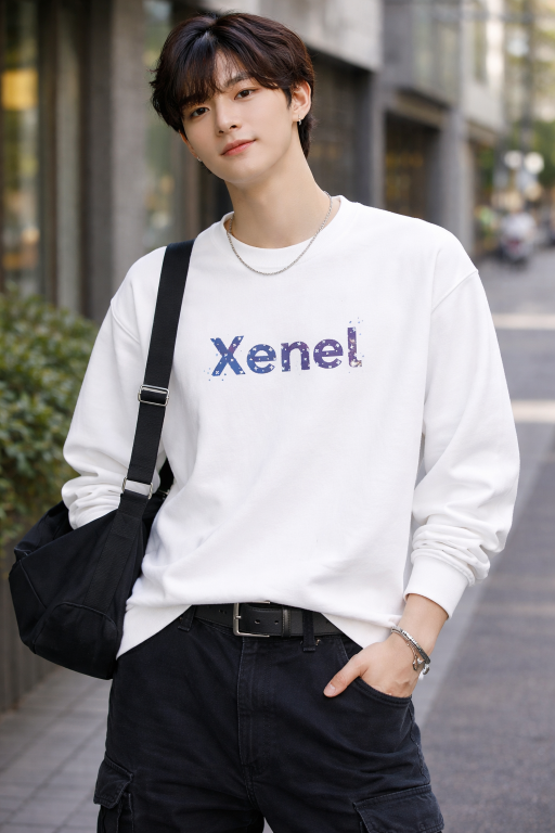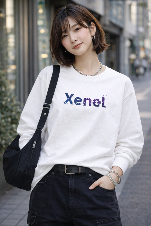 静かに目を引く、深いネイビーの「Xenel」ロゴ。