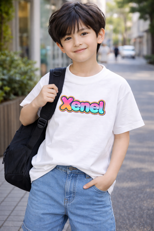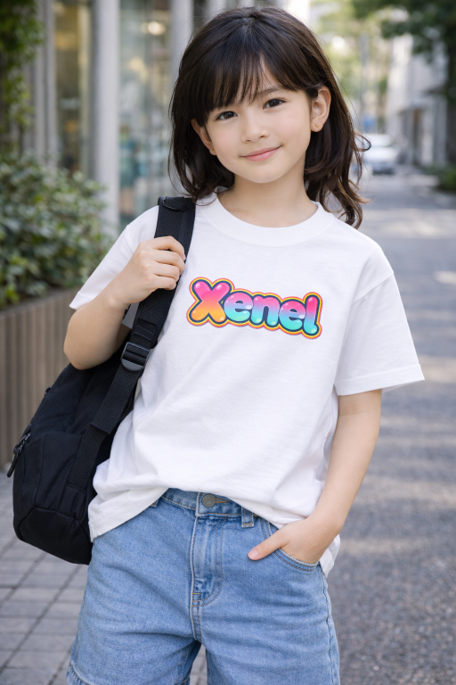 着るだけで気分が明るくなる、Xenelの定番ロゴキッズTシャツ。