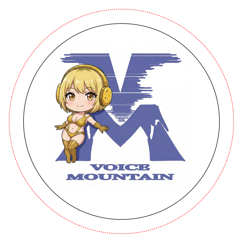 Voice Mountainのロゴに寄りかかる声山芋子缶バッジ!