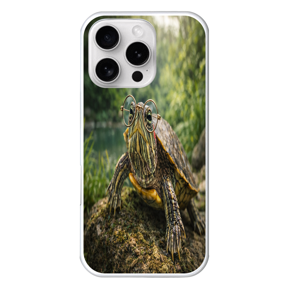 森の清流のそばでひと休みしているミドリガメをモチーフにした、癒しのスマホケースです。