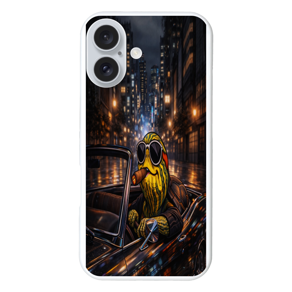 夜の街を背景に、クラシックカーを颯爽と走らせるドン・カメキチをデザインしたiPhoneケースです。