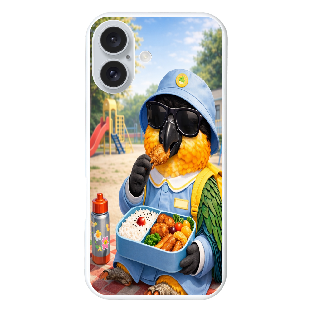 幼稚園の公園で、お弁当を楽しむドン・ムックをデザインしたスマホケースです。