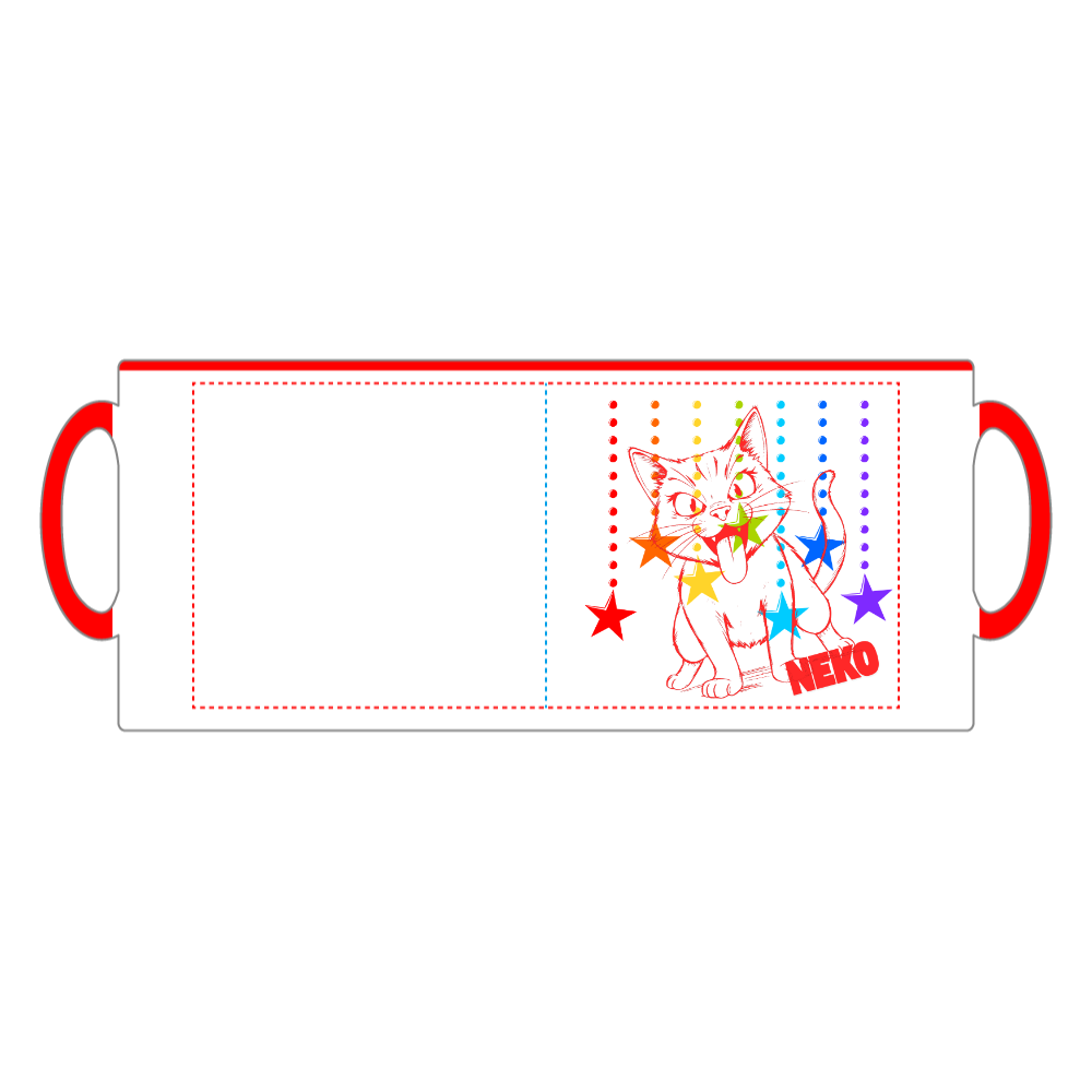 転写紙にインクをプリントし高温の熱をかけることで、インクを気化させマグカップに浸透させる加工方法です。マグカップに直接浸透させることで、表面には印刷した違和感(凸凹)が全く残りません。