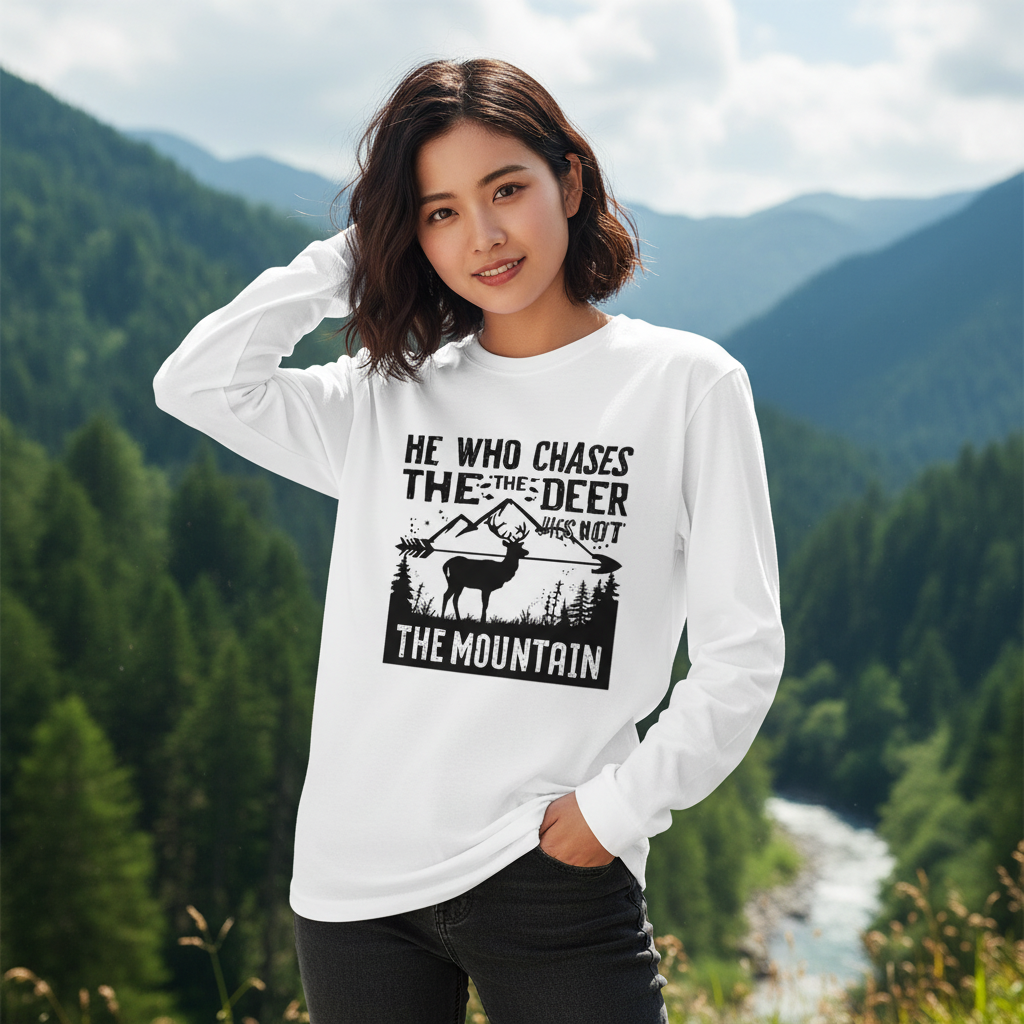 [ロングTシャツ] He who chases the deer fails to see the mountain.
