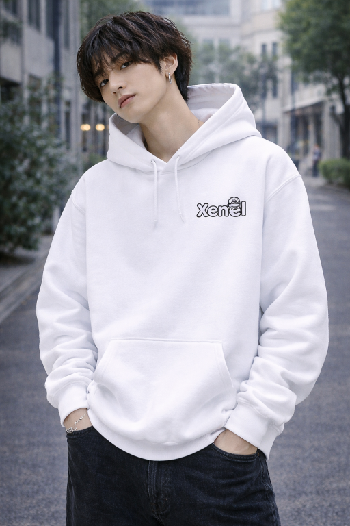 胸元に小さく配置された「Xenel」のミニロゴが印象的な、ワンポイントのプルオーバーパーカー。