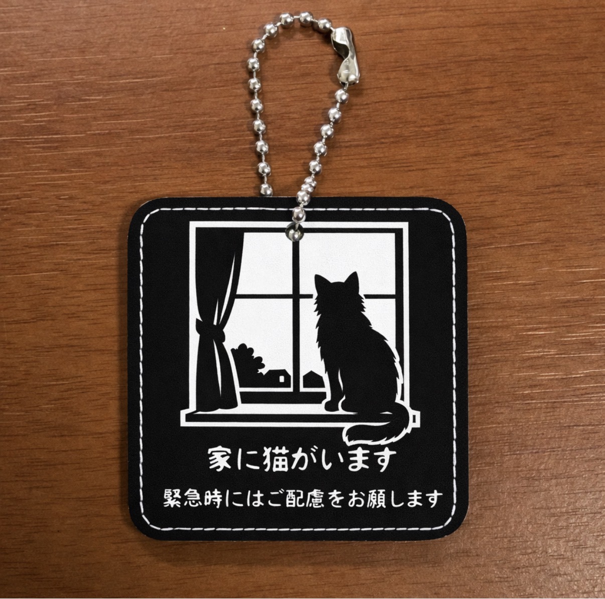 家に猫がいることを、もしもの時にそっと伝えるためのキーホルダーです。