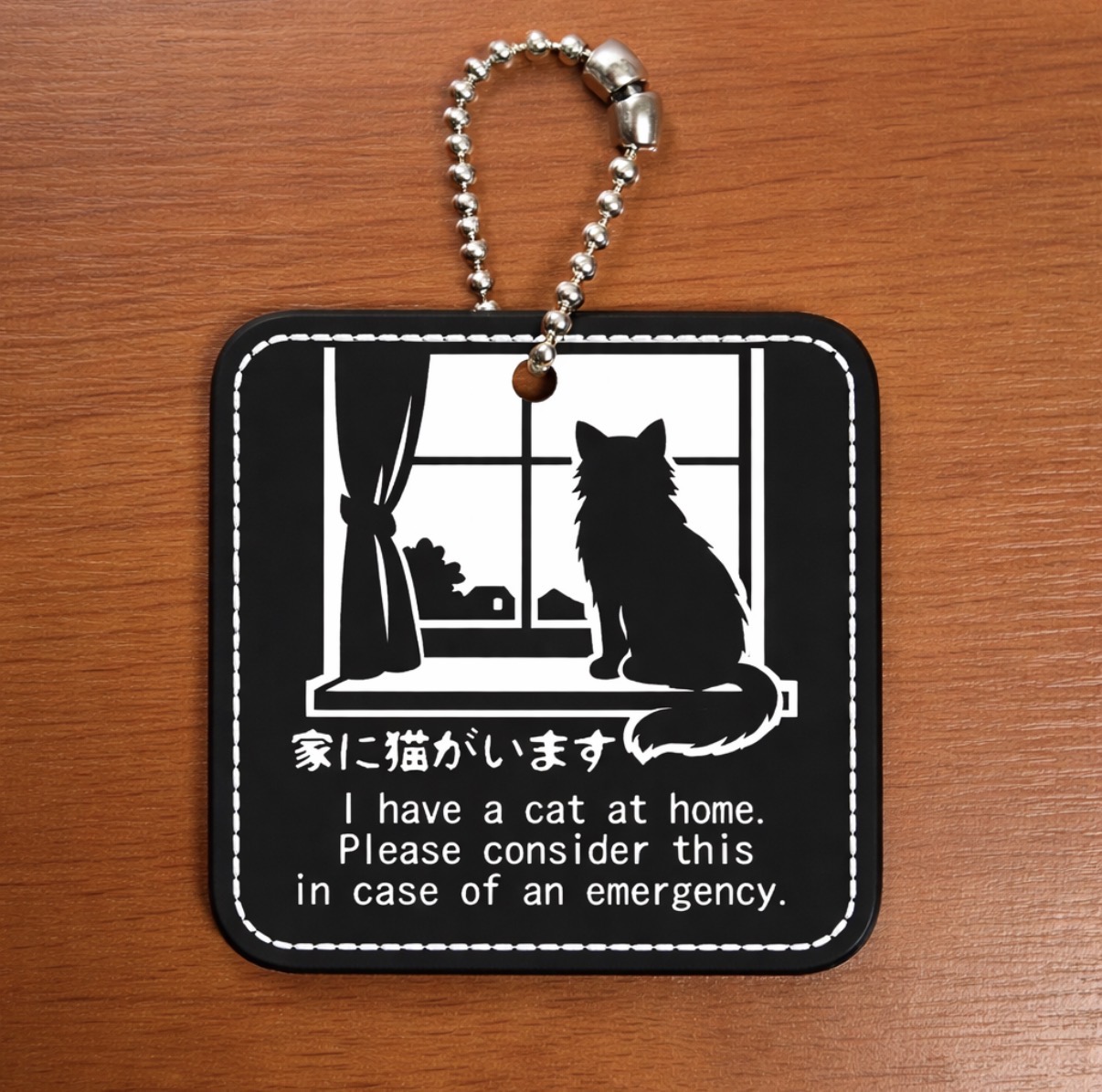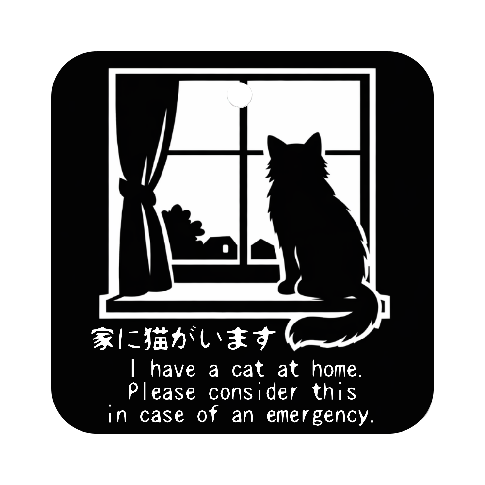 普段はミラー付きの実用的な小物として、万一の際には「家に猫がいる」という大切な情報を伝えるサインになります。