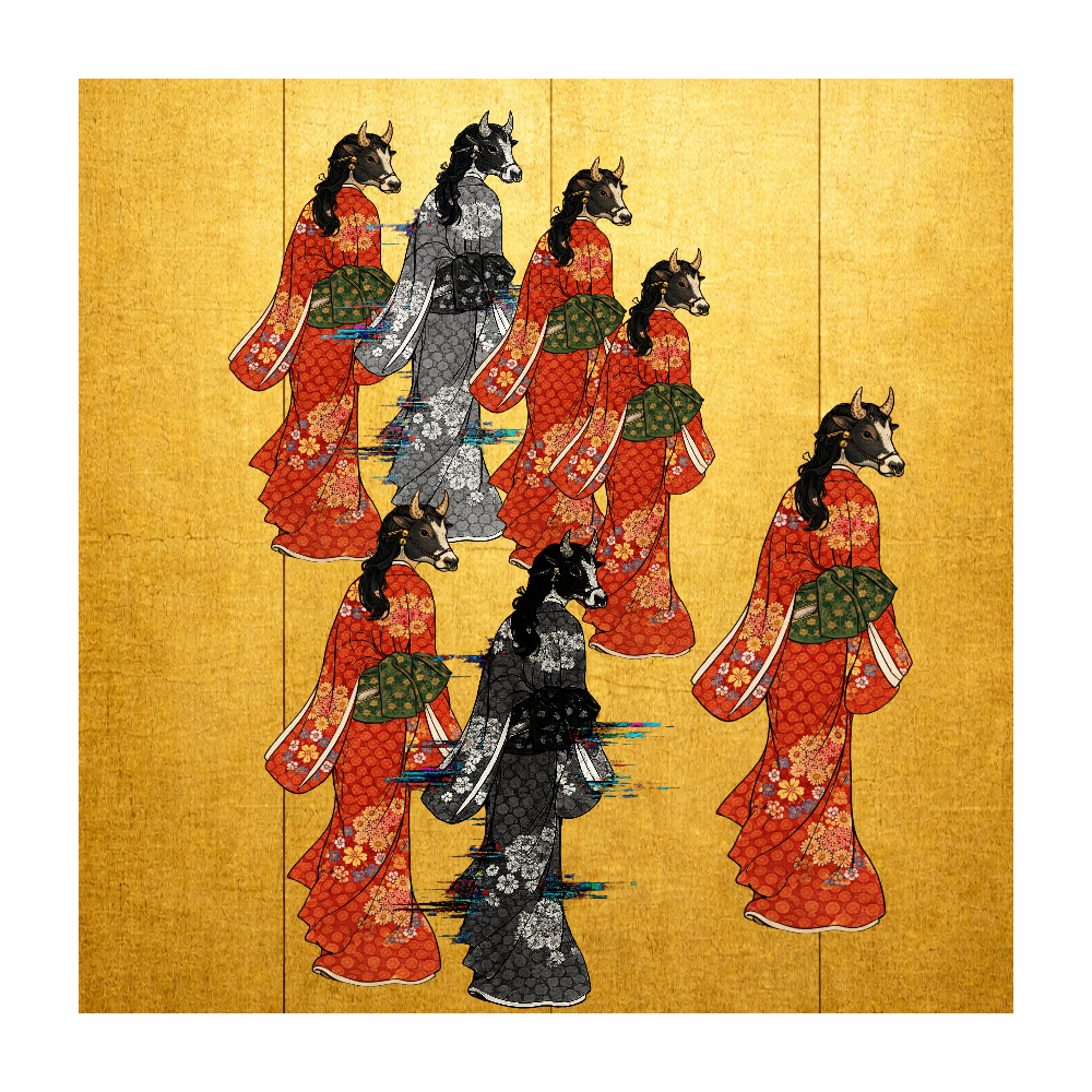 菱川師宣《見返り美人図》をモチーフにした丑年の一枚。