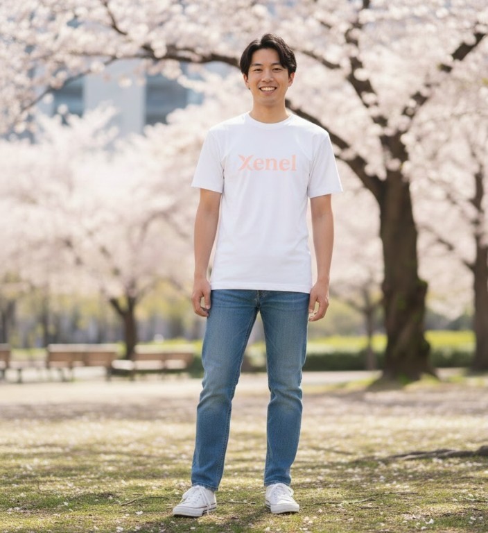 やわらかなペールピンクのXenelロゴをフロント中央に配置。