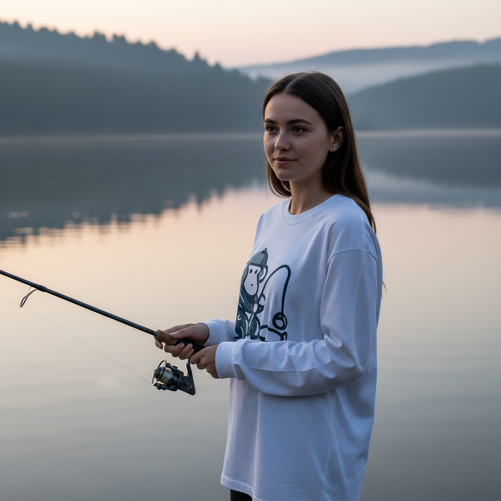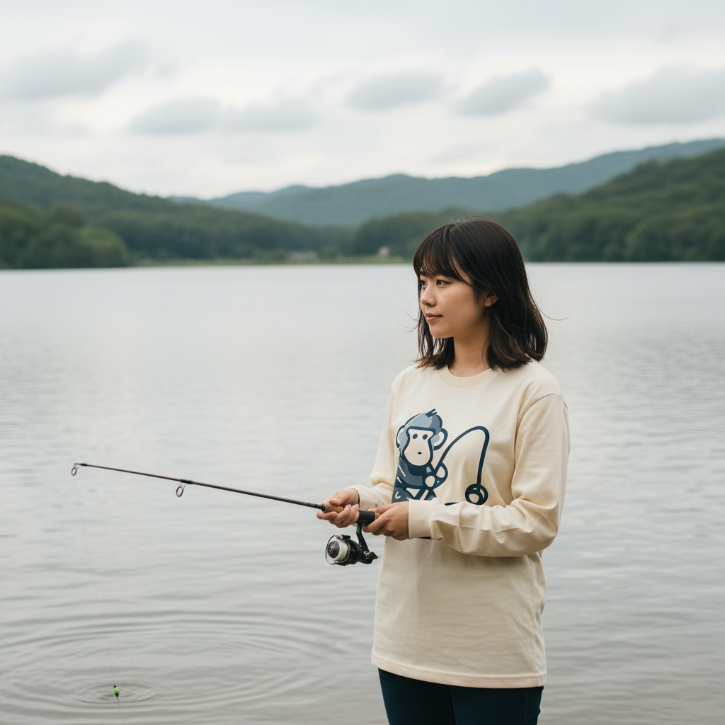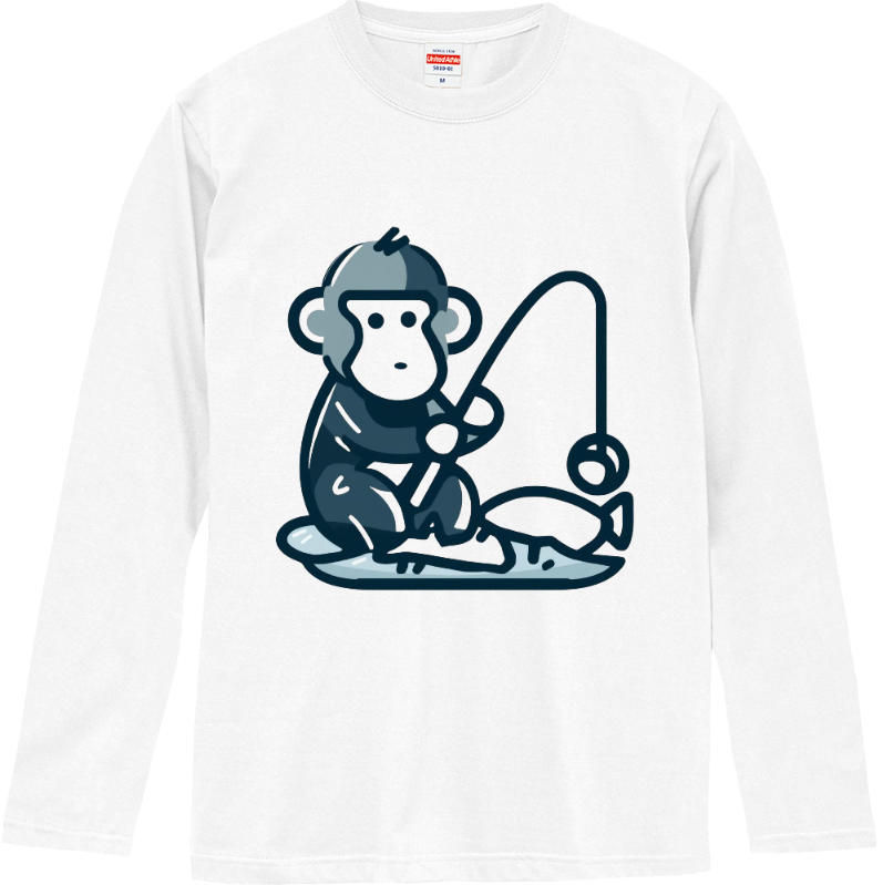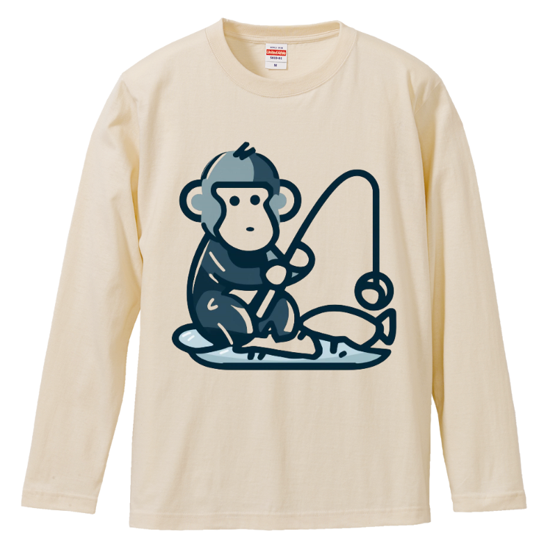 「猿が魚釣る(A monkey trying to catch fish.)」をデザインしました。「猿が魚釣る」は"人まねをして失敗すること"を意味することわざです。"真似る"ことはよいことだと思いますが、ほどほどにしなければなりませんね。
