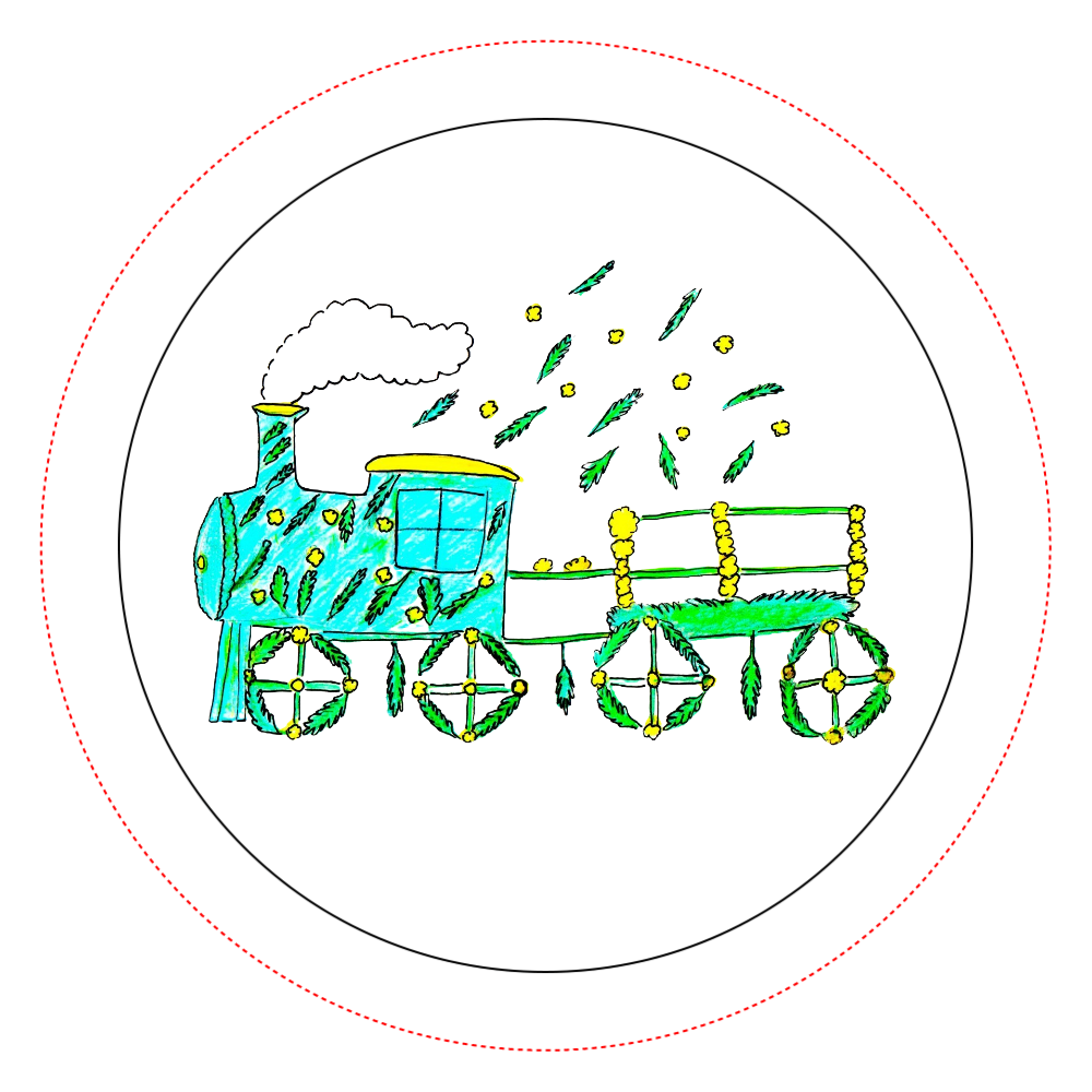 モチーフは10歳の男の子が描いたミモザの汽車です。