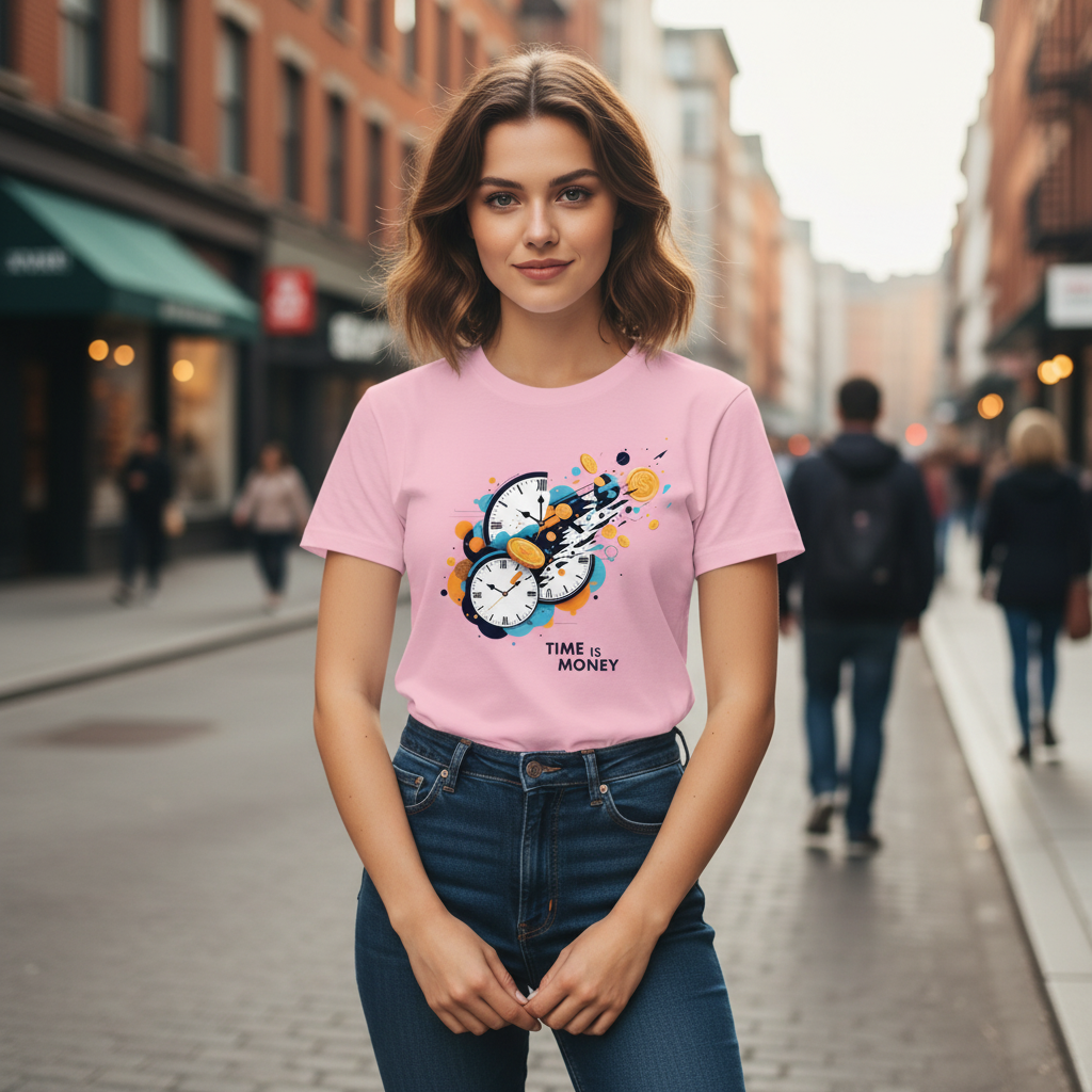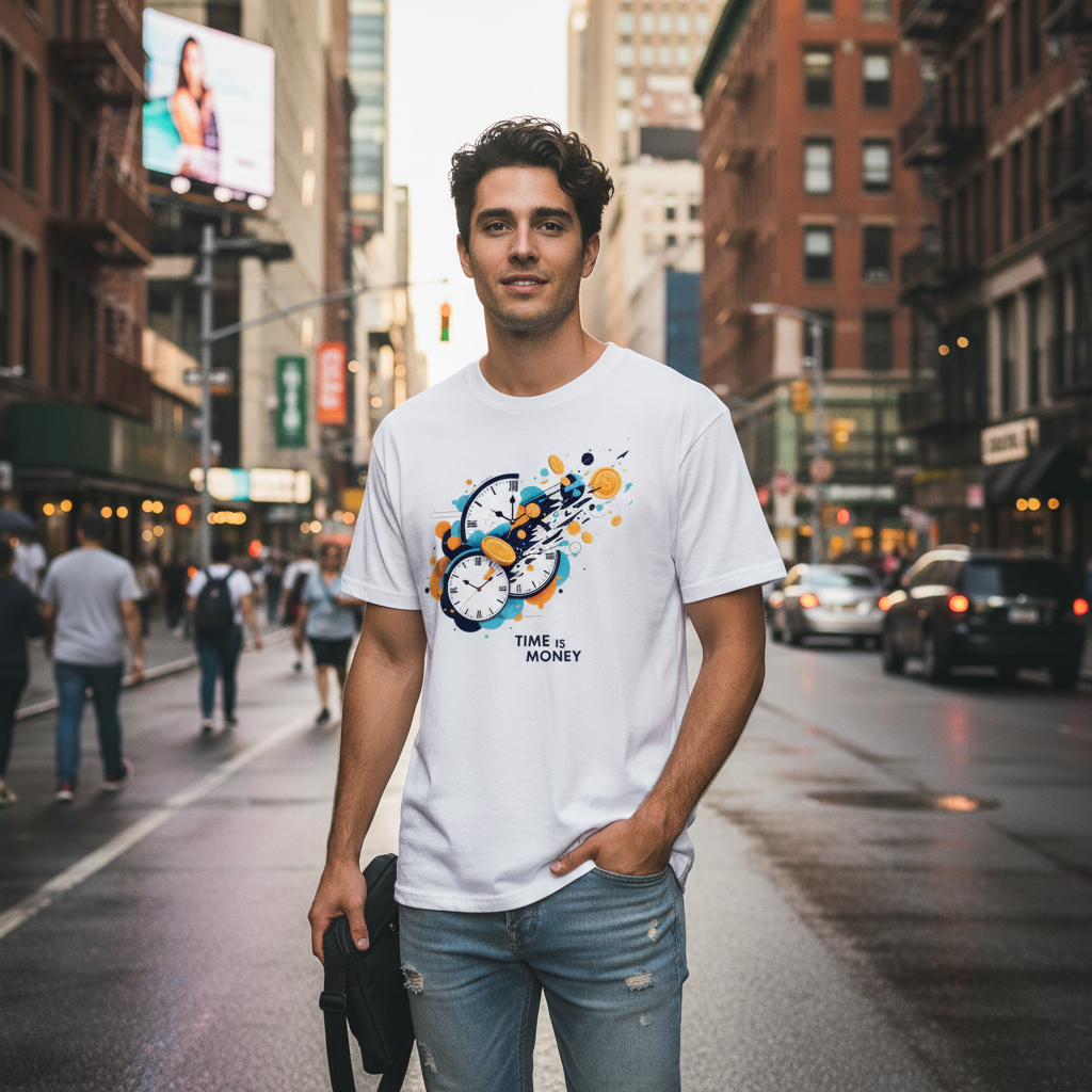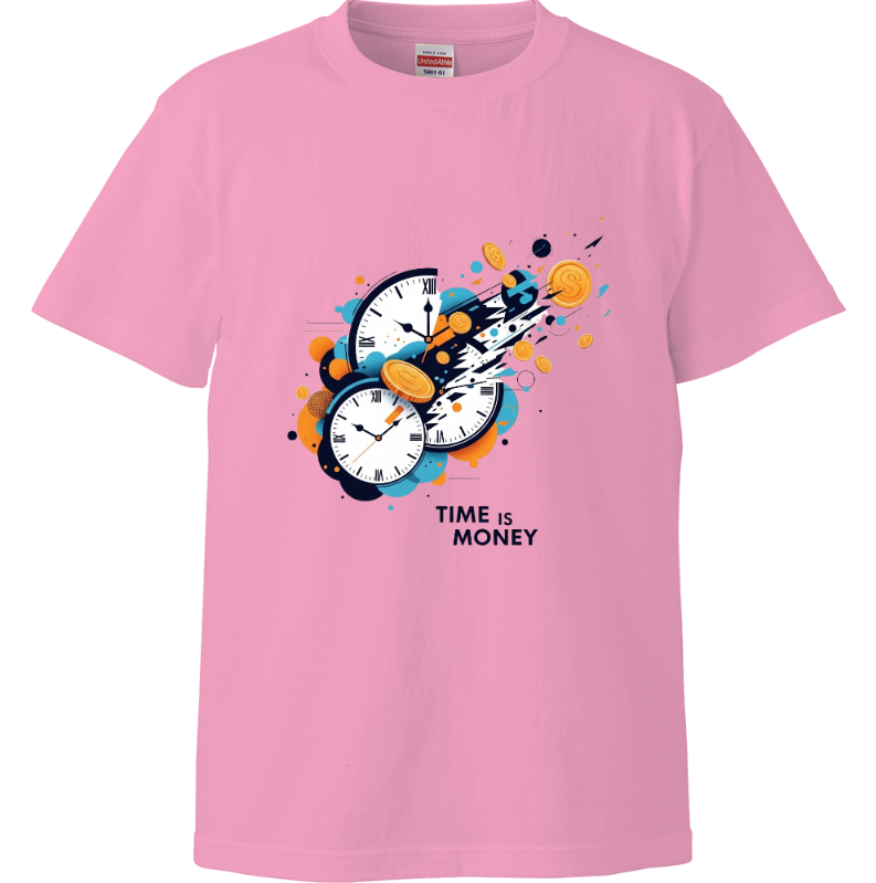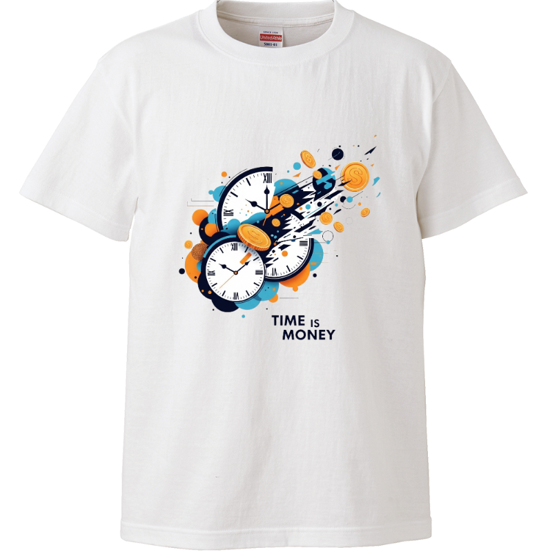 「時は金なり(Time is money.)」をデザインしました。「時は金なり」は"時間はかけがいのないものであるので無駄にすべきではないこと"を意味することわざです。分かってはいますけど、大事にするということを忘れてしまいますよね。