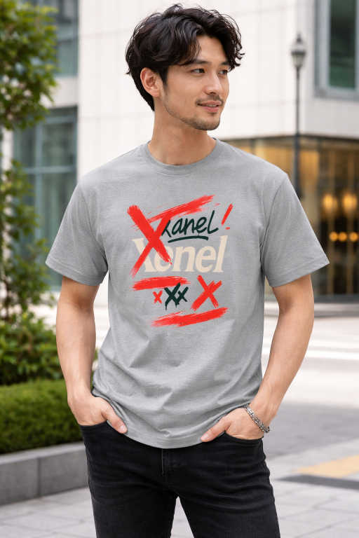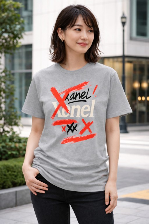 クラシックなXenelロゴに重なる、荒々しい赤のペイント。