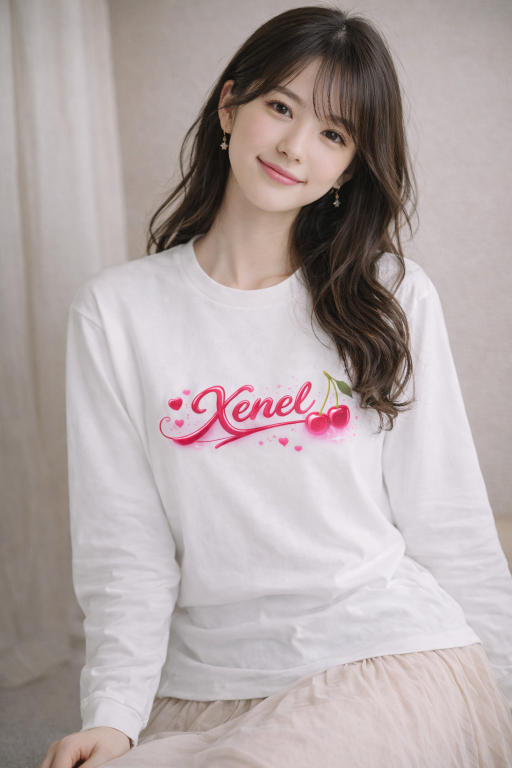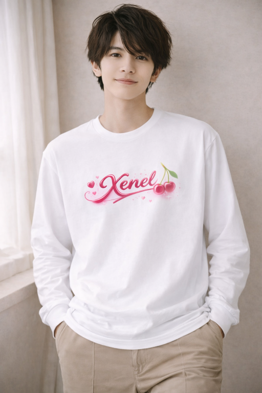 艶やかなチェリーモチーフと、立体感のあるXenelロゴが印象的なロングスリーブTシャツ。