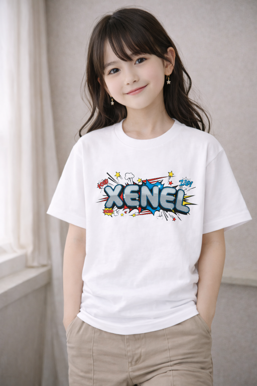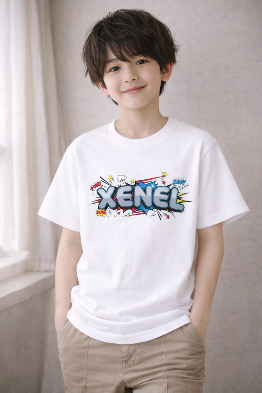 大胆に配置された「XENEL」ロゴとカラフルな爆発モチーフが、動き回るキッズにぴったりのエネルギッシュなデザイン。
