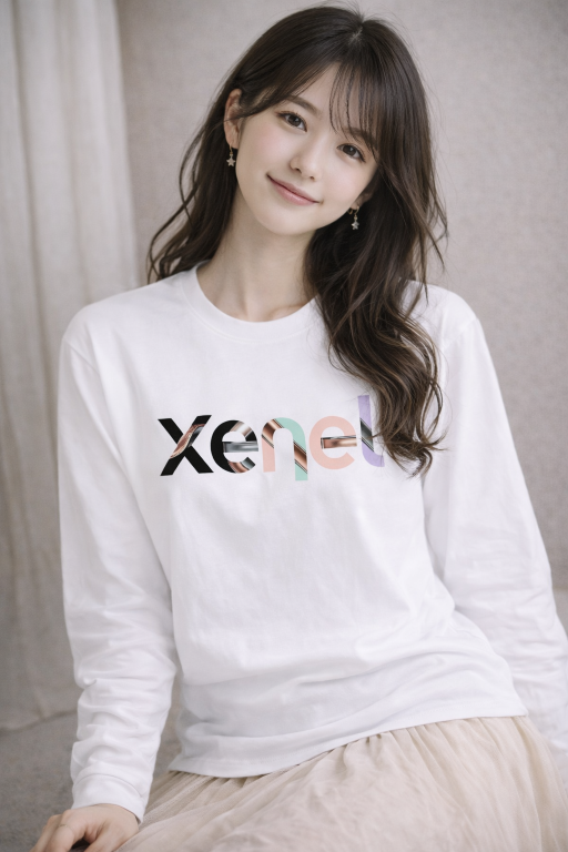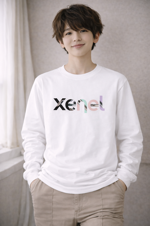 異なるトーンと質感を組み合わせた「Xenel」ロゴが印象的なロングスリーブTシャツ。
