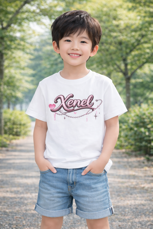 メタリック風のXenelロゴに、ハートとチェーンモチーフをプラスしたガーリークールなキッズTシャツ。