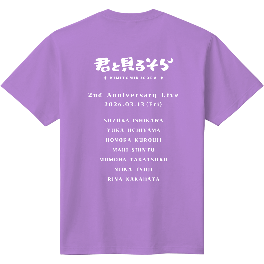 『君と見るそら 2nd Anniversary Live〜君と描く夢〜』の開催を記念して、オリジナルグッズ制作サービス UP-T とのコラボショップがオープン!本コラボでは、2周年という特別な節目を彩るライブの世界観や、これまで歩んできた軌跡、そしてこれから描いていく未来への想いをデザインに落とし込んだ限定アイテムが登場します。ライブタイトル「〜君と描く夢〜」のテーマをもとに、ファンの皆さまと一緒に作り上げてきた時間を形として残せる、メモリアルなラインナップをご用意しました。Tシャツやアパレルアイテムを中心に、日常でもライブの余韻を楽しめるグッズを展開。会場の熱気や感動をそのまま持ち帰り、日常の中でも“君と見るそら”の世界観を感じていただけます。ここでしか手に入らない期間限定の特別なコラボショップとなりますので、この機会をぜひお見逃しなく。2周年の思い出を、あなたのそばに。