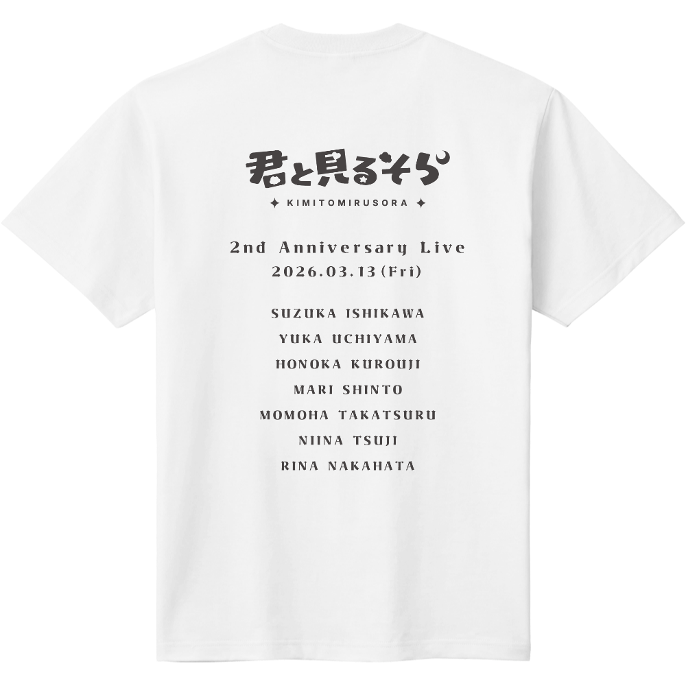 『君と見るそら 2nd Anniversary Live〜君と描く夢〜』の開催を記念して、オリジナルグッズ制作サービス UP-T とのコラボショップがオープン!本コラボでは、2周年という特別な節目を彩るライブの世界観や、これまで歩んできた軌跡、そしてこれから描いていく未来への想いをデザインに落とし込んだ限定アイテムが登場します。ライブタイトル「〜君と描く夢〜」のテーマをもとに、ファンの皆さまと一緒に作り上げてきた時間を形として残せる、メモリアルなラインナップをご用意しました。Tシャツやアパレルアイテムを中心に、日常でもライブの余韻を楽しめるグッズを展開。会場の熱気や感動をそのまま持ち帰り、日常の中でも“君と見るそら”の世界観を感じていただけます。ここでしか手に入らない期間限定の特別なコラボショップとなりますので、この機会をぜひお見逃しなく。2周年の思い出を、あなたのそばに。