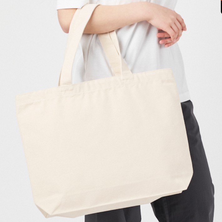 長い持ち手で肩掛けがしやすい、13Lの大容量トートバッグ。重たいものを入れても安心感のある丈夫なキャンバス生地です。
