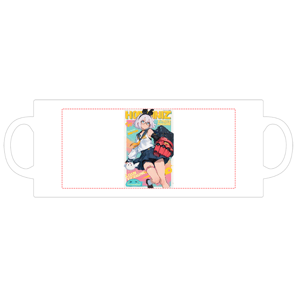 転写紙にインクをプリントし高温の熱をかけることで、インクを気化させマグカップに浸透させる加工方法です。マグカップに直接浸透させることで、表面には印刷した違和感(凸凹)が全く残りません。