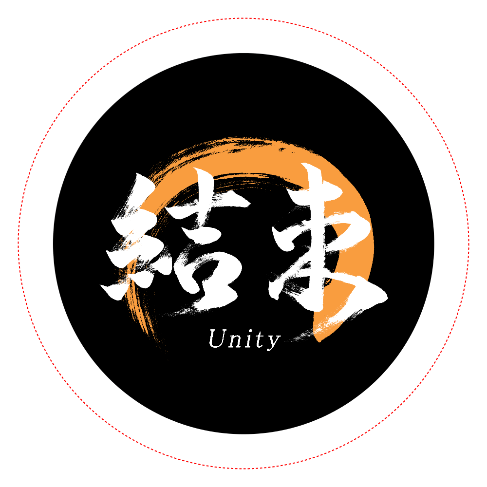 「結束」のオリジナル筆文字缶バッジです。