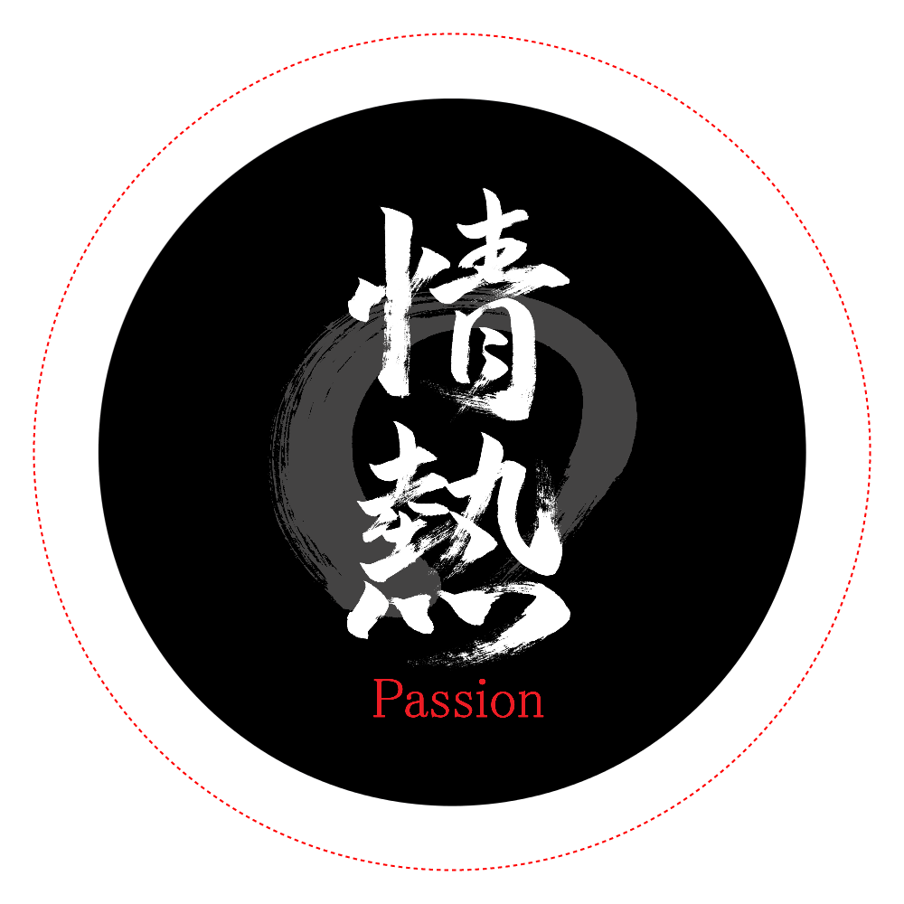 「情熱」のオリジナル筆文字缶バッジです。