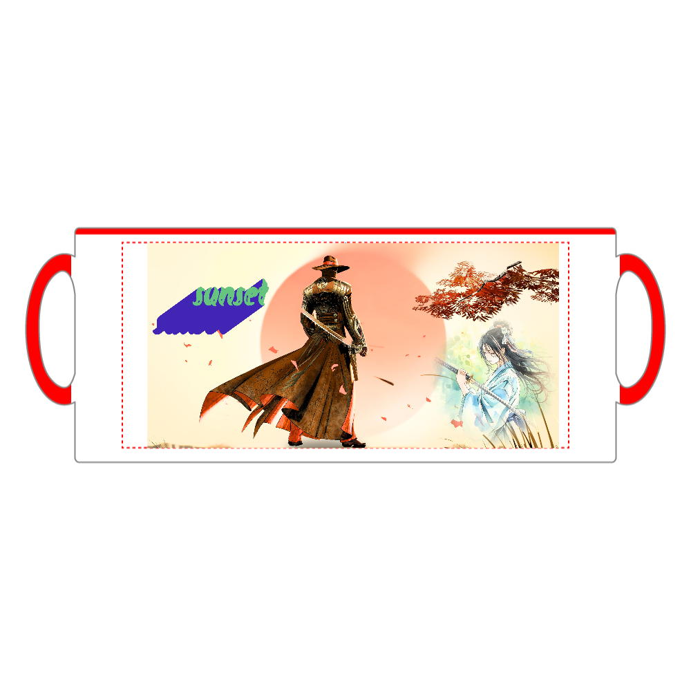 夕日に浮かぶ男女の剣士をイメージしたデザインです。