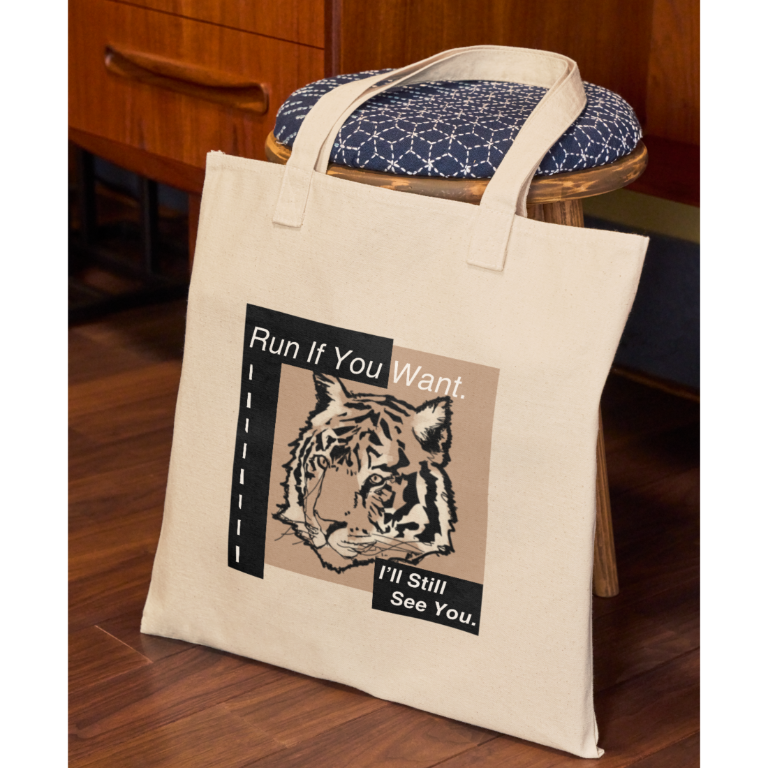 大胆でありながら洗練された、ミニマルタイガーデザインのトートバッグ。