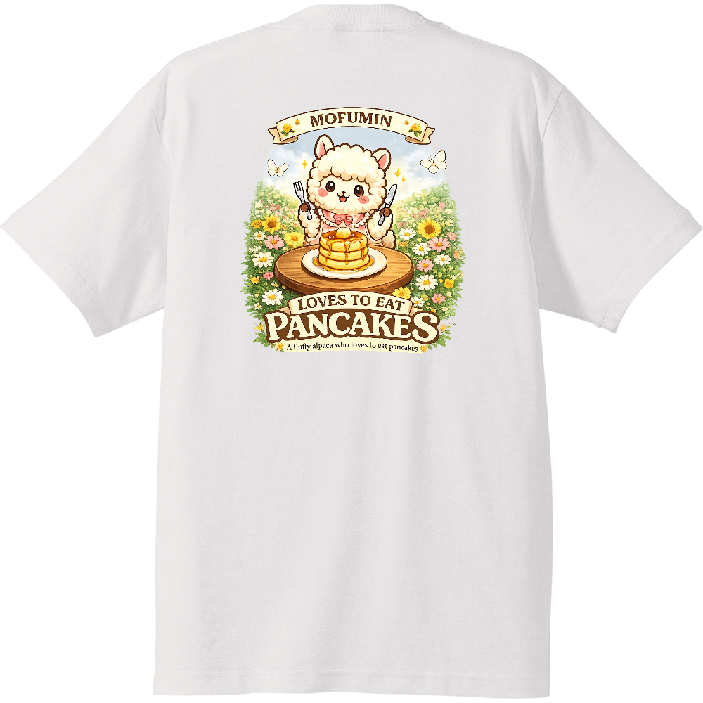 バックには、お花畑の中で大好きなパンケーキを楽しむMOFUMINを大胆にプリント。