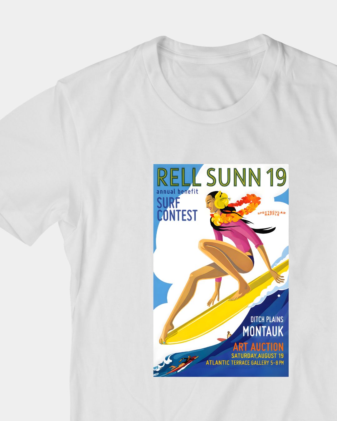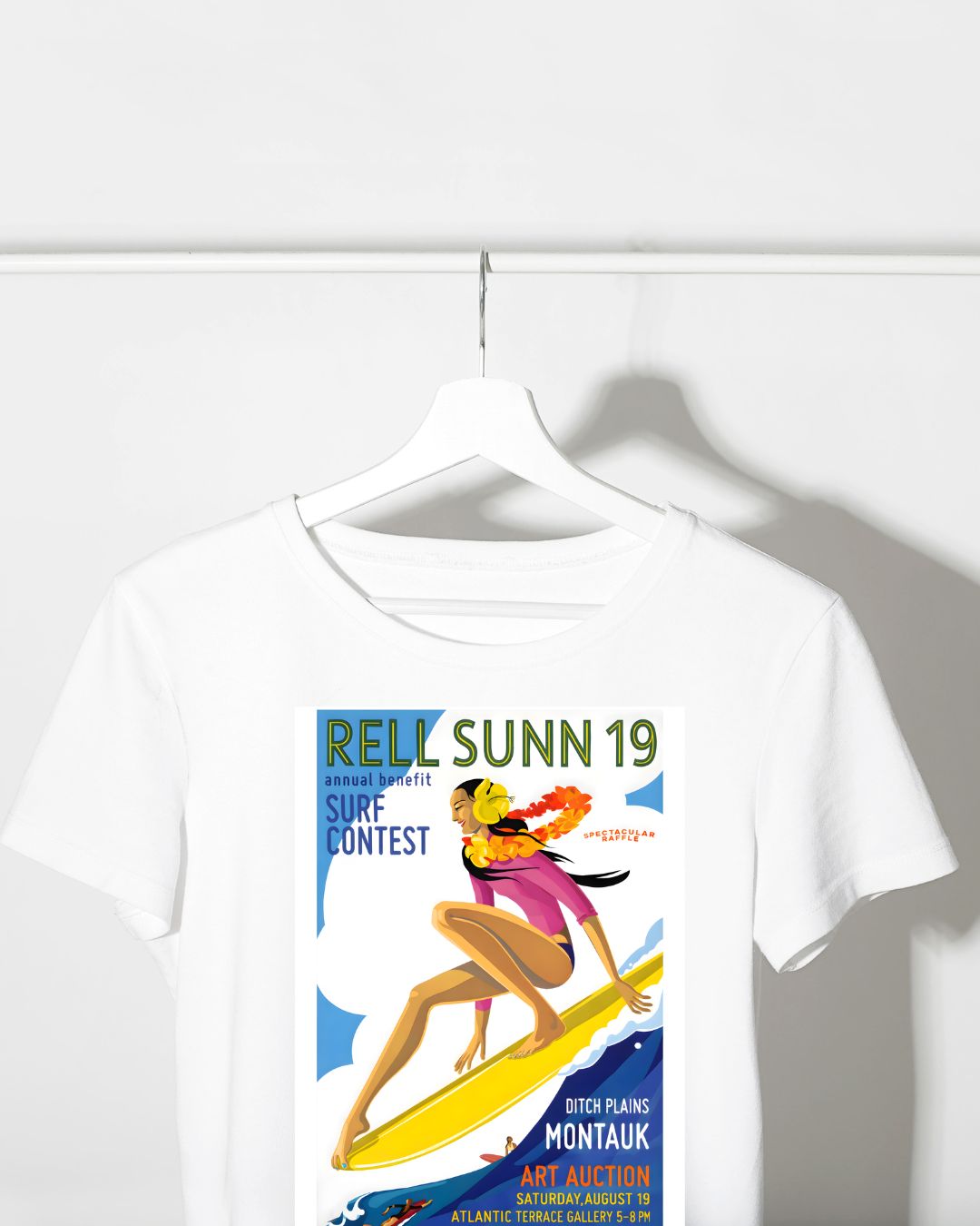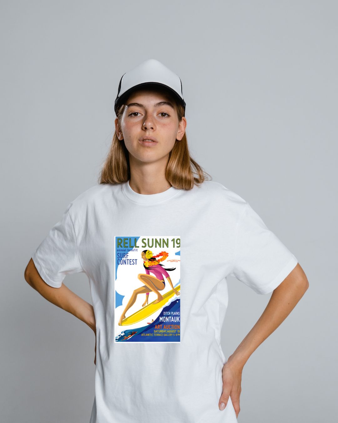 サーフコンテスト ヴィンテージポスター風 Tシャツ 女性サーファー アートT サーフカルチャー