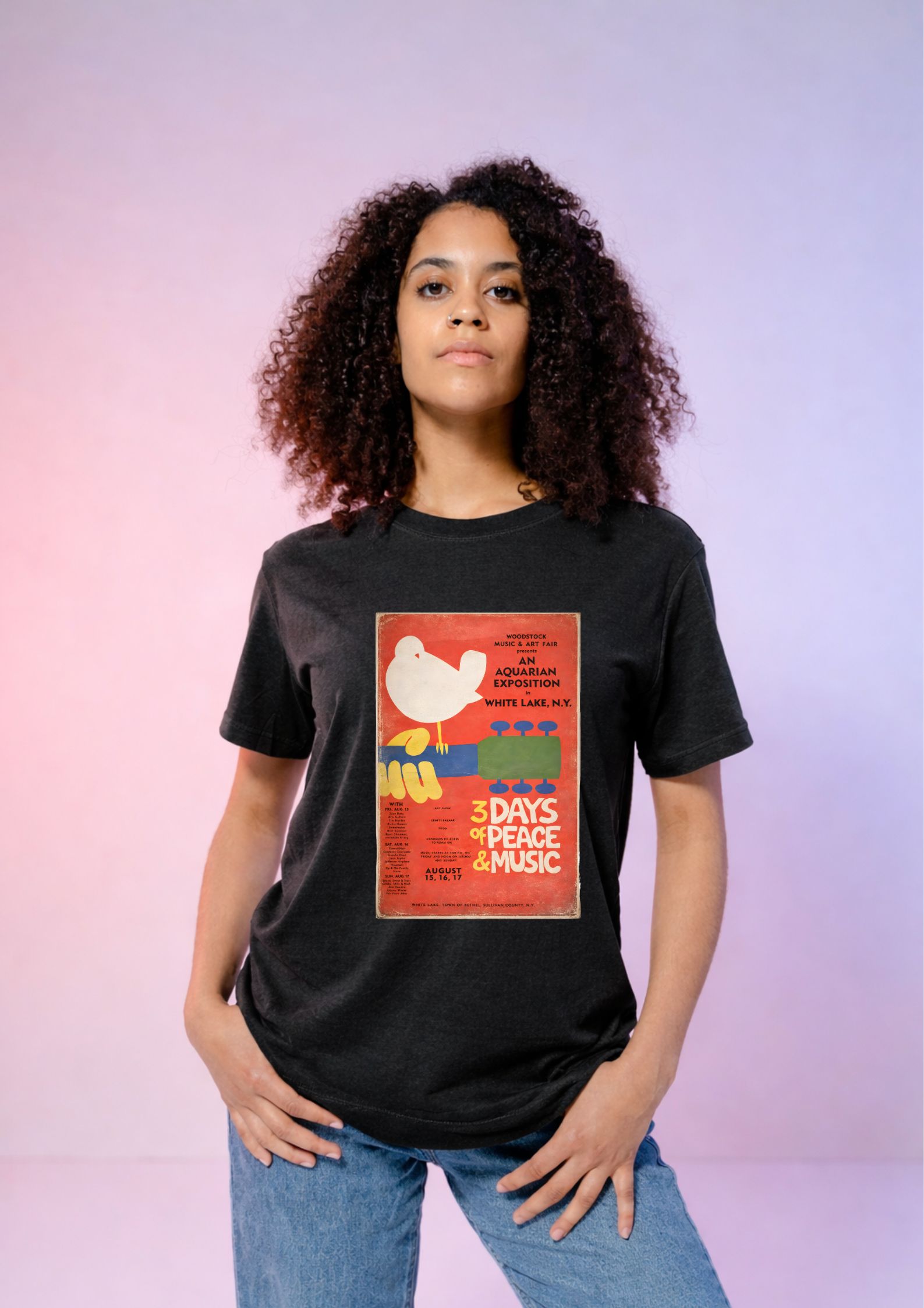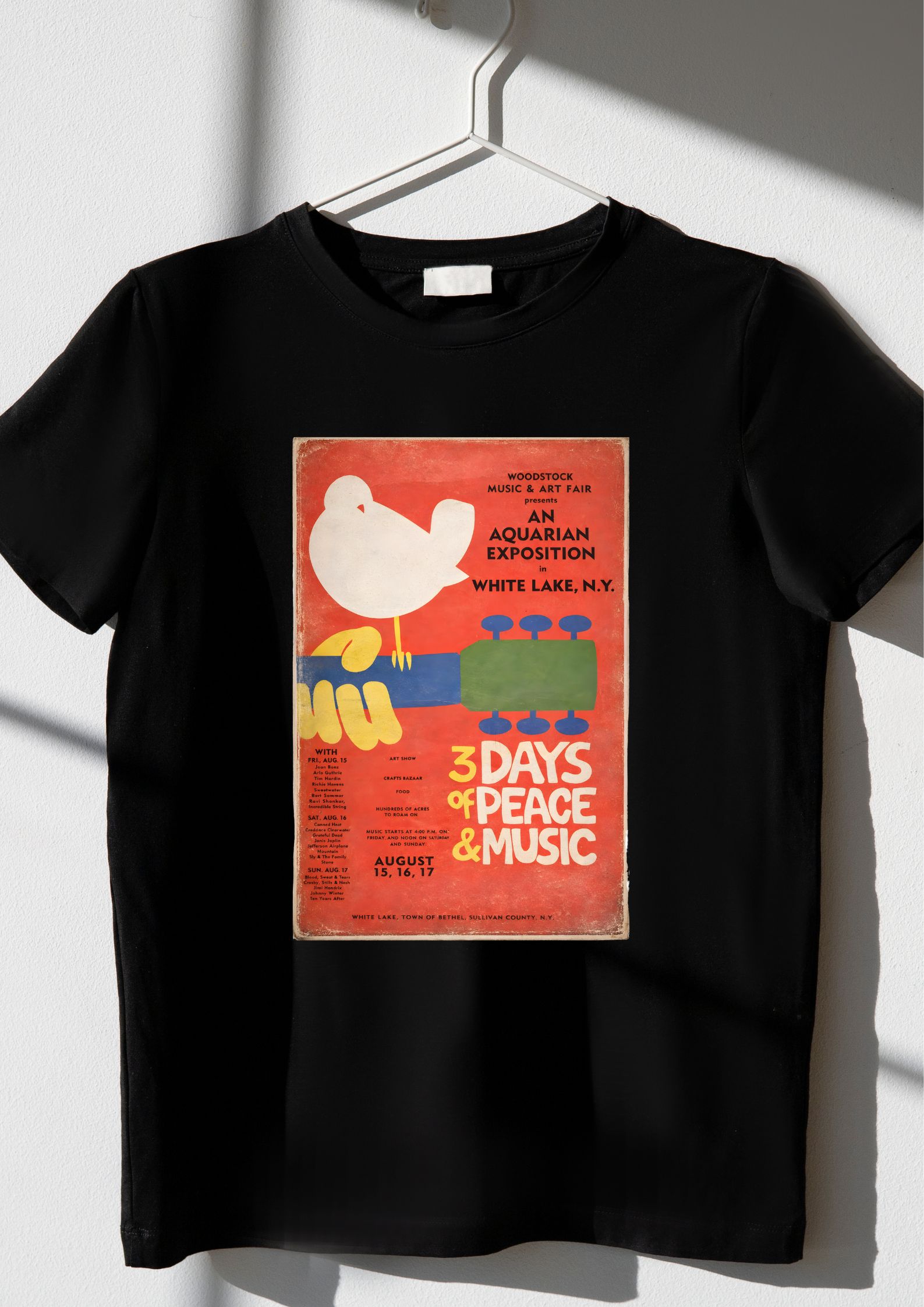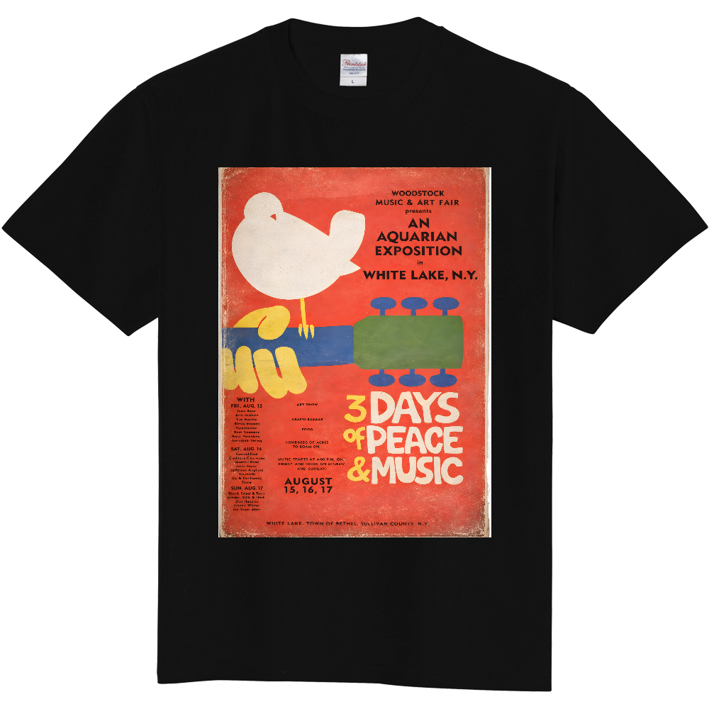 Woodstock 1969 ロックフェスTシャツ / ヴィンテージポスター風 / 音楽アート / バンドT風 / レトロデザイン