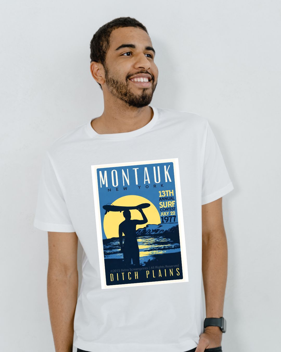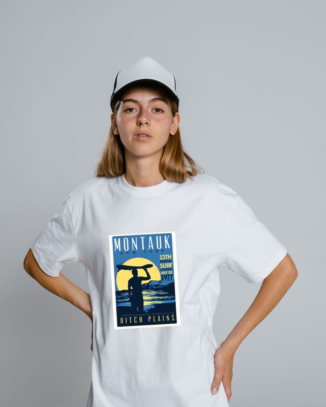MONTAUK ヴィンテージサーフポスター風Tシャツ|ニューヨーク サーフカルチャー レトロデザイン NOTO DRY 日本製 レプリカ