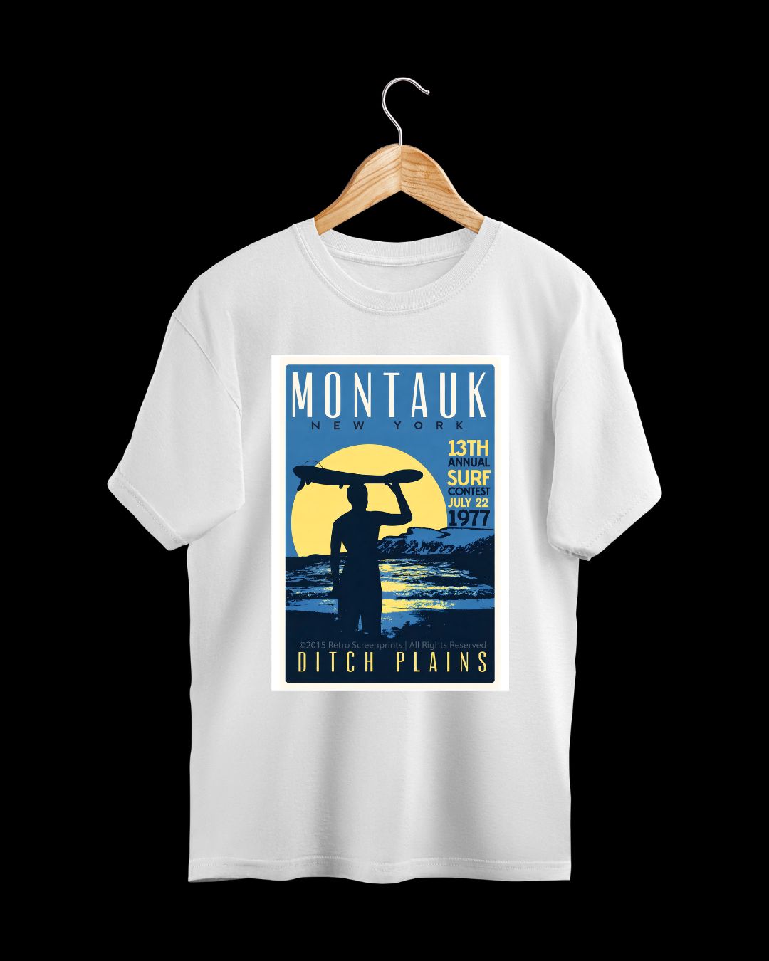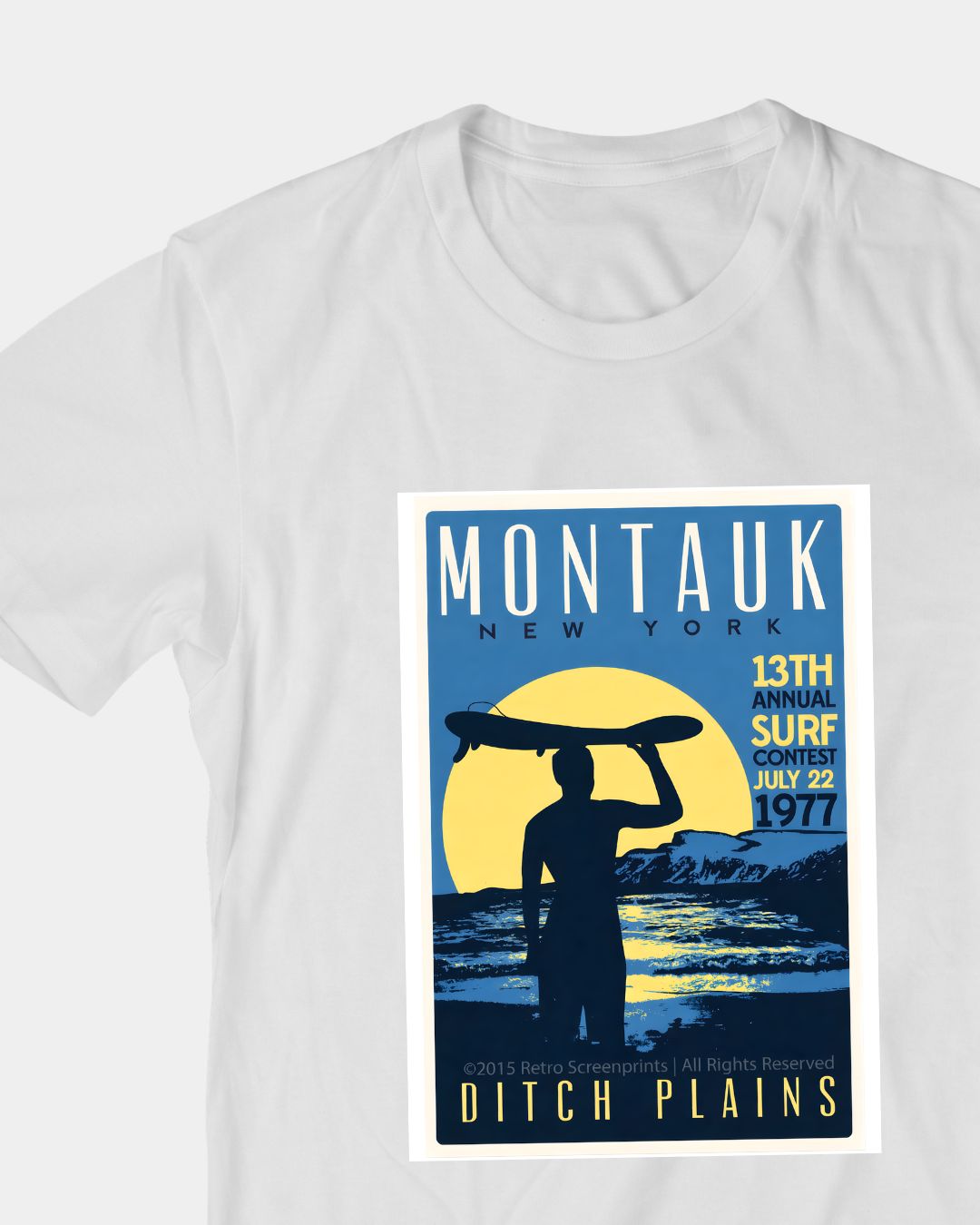 ニューヨーク・モントークのサーフカルチャーを描いたヴィンテージポスター風デザイン。