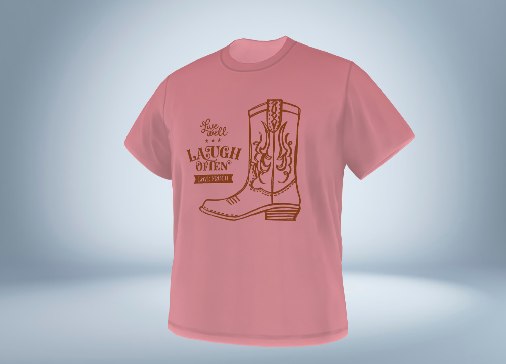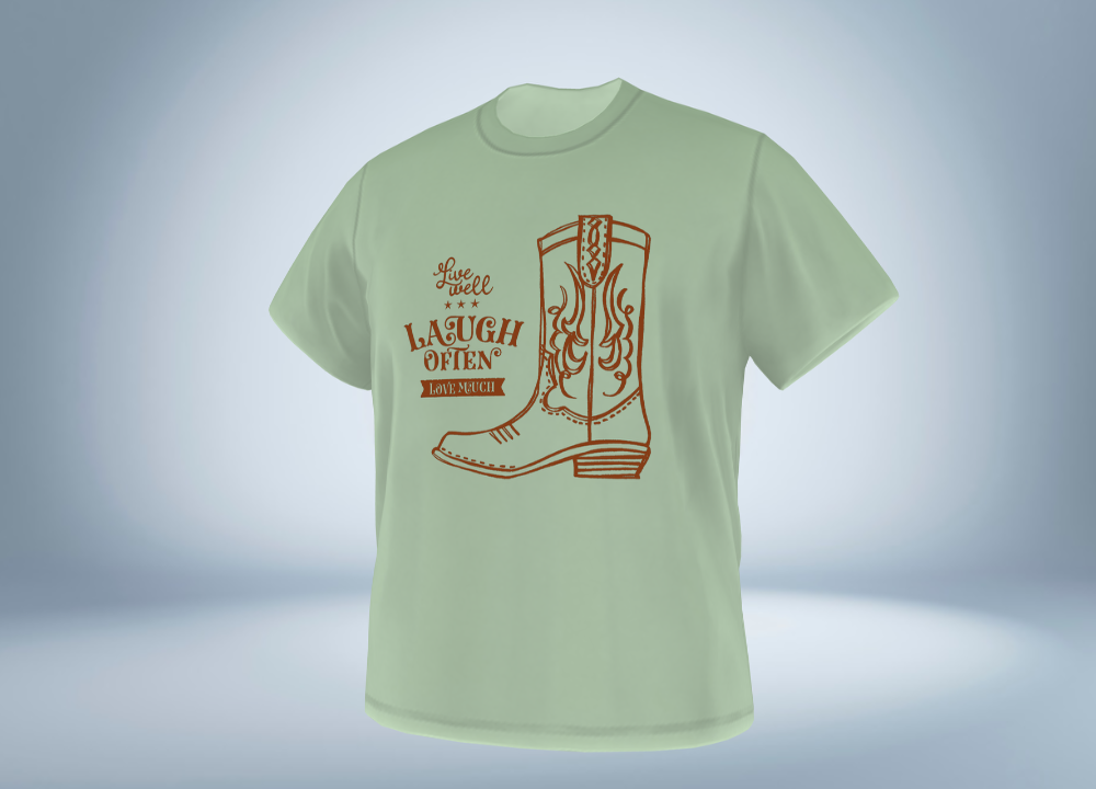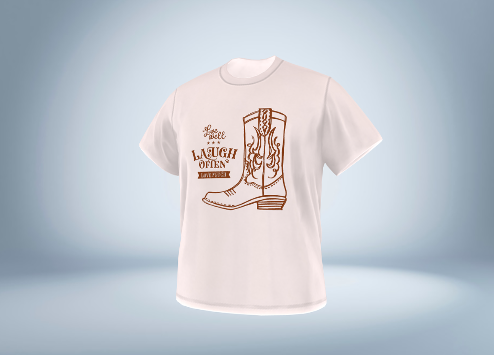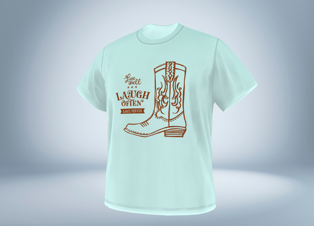【デザイン】手描きの線のみでシンプルに表現したウエスタンブーツのイラスト。英文 “Live well, Laugh often, Love much”は、manaT-繪処のスローガンで、“健やかに生き、よく笑い、こよなく愛す”という意味です。