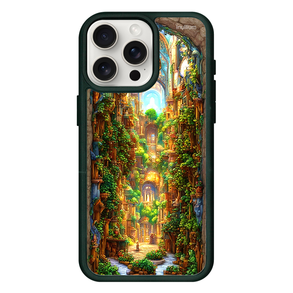 ファンタジー世界の美しい森にある街をイメージしたiPhone15 Pro Max用ケース。