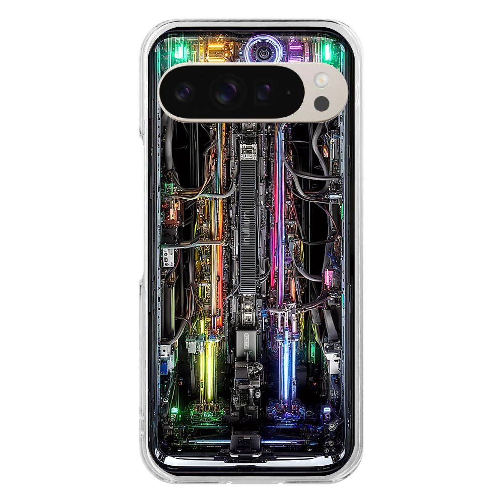 SFに登場する未来カーのエンジンルームをイメージしたデザインのGoogle Pixel9/9Pro用ケース。
