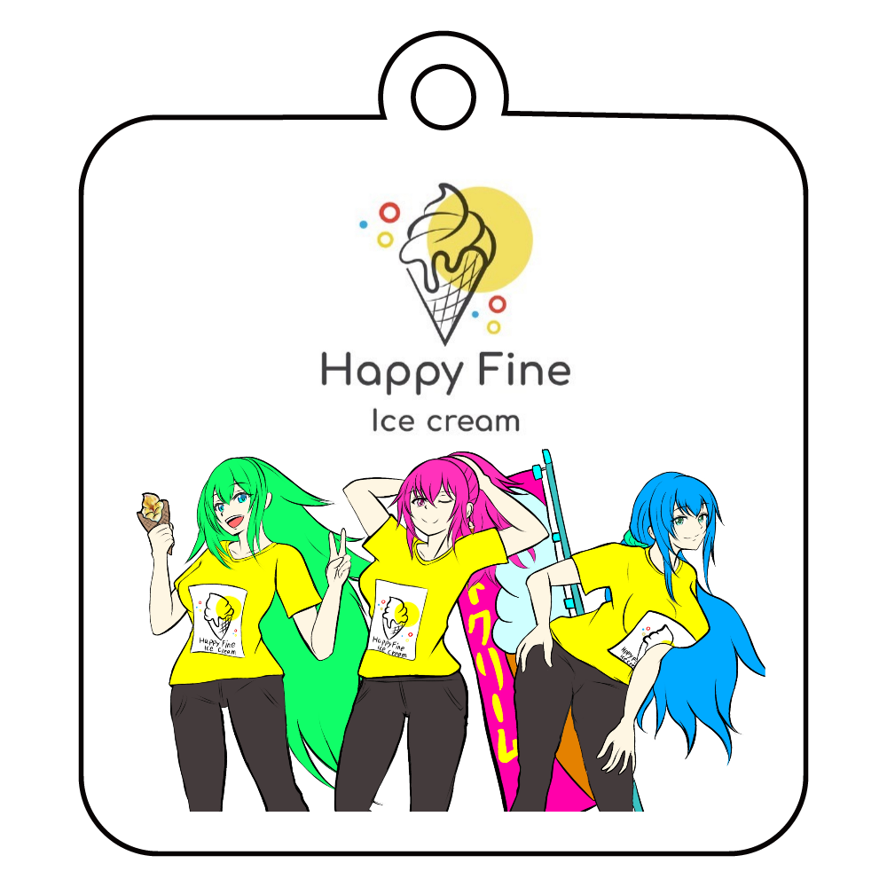 HappyFineの店長とイサとユザナの3人がアクリルキーホルダーに登場!