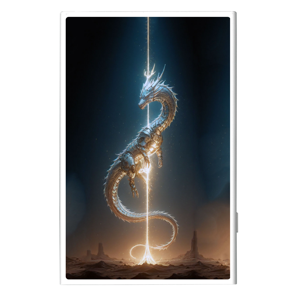 メタリックなドラゴンが宙を舞うモバイルバッテリー。