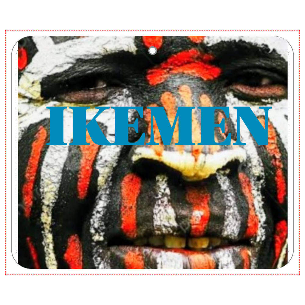 圧倒的な生命力を放つ部族のフェイスペイント。その力強い眼差しに「**IKEMEN**」という大胆なタイポグラフィを重ねた、衝撃的なデザインの手帳型ケースが登場しました。
