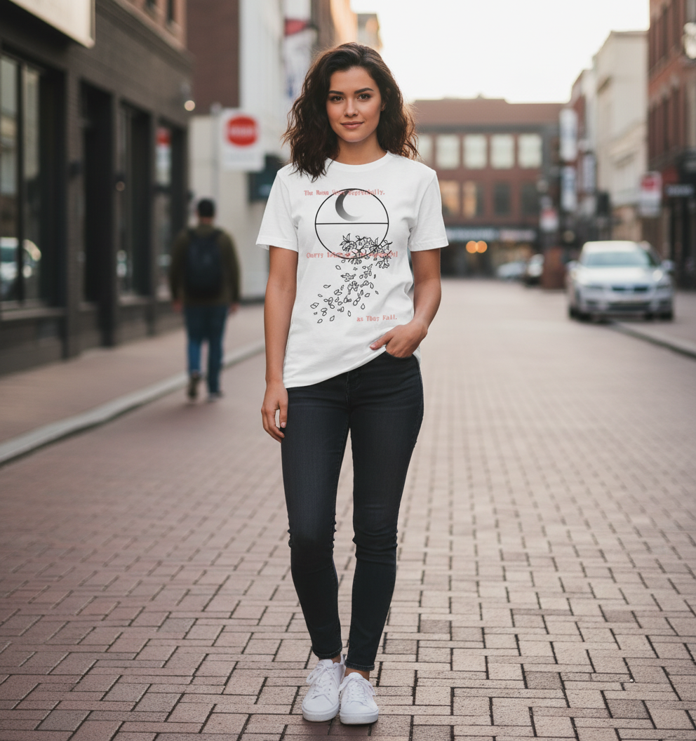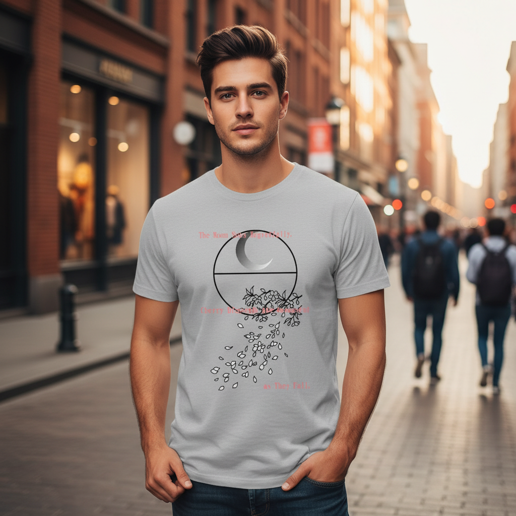 [Tシャツ] The Moon Sets Regretfully, Cherry Blossoms Are Beautiful as They Fall