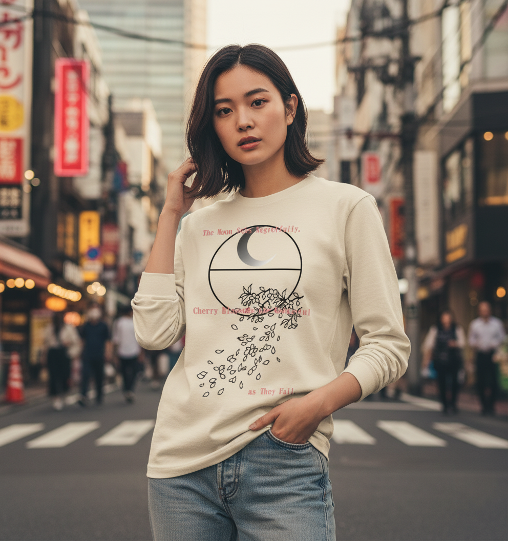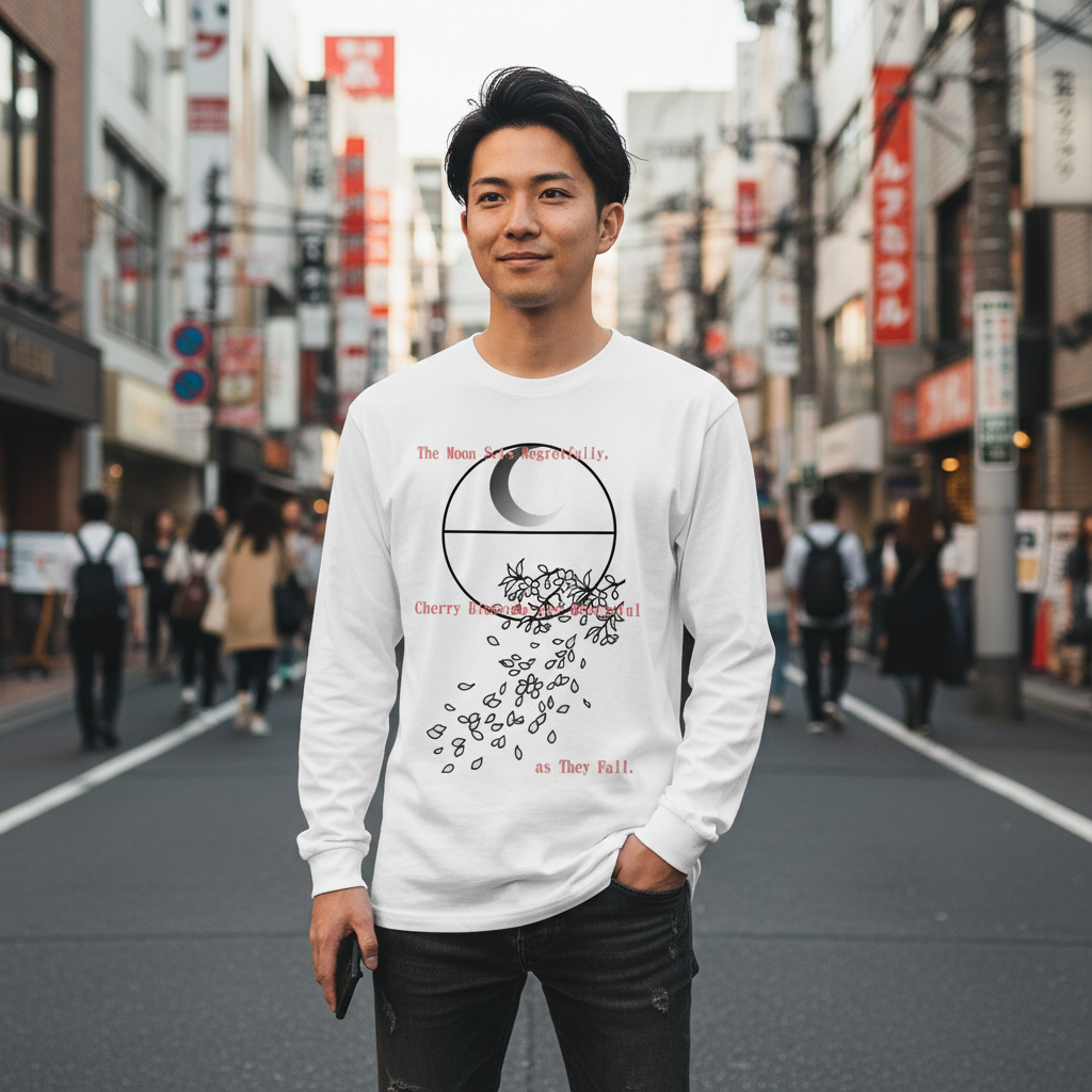 [ロングTシャツ] The Moon Sets Regretfully, Cherry Blossoms Are Beautiful as They Fall