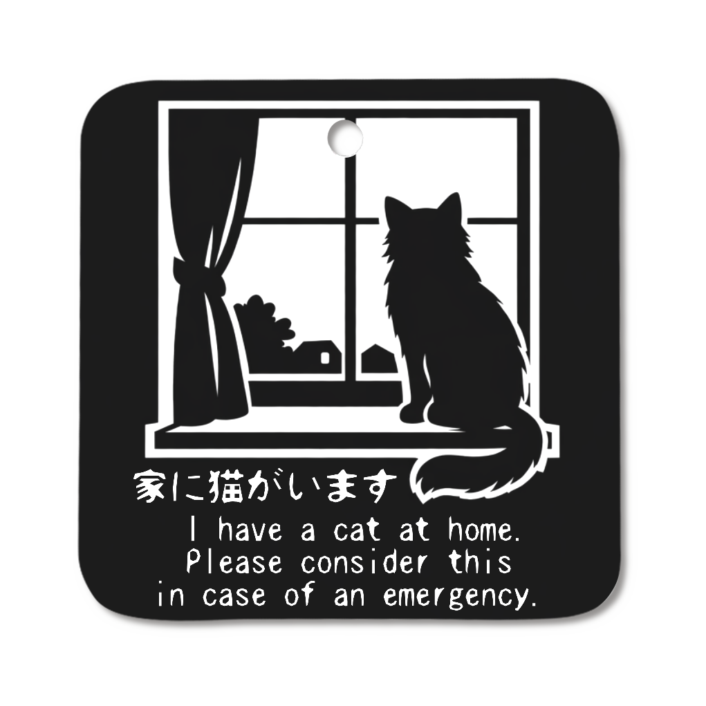 家に猫がいます サインキーホルダー【窓辺の猫】 長毛(日英)