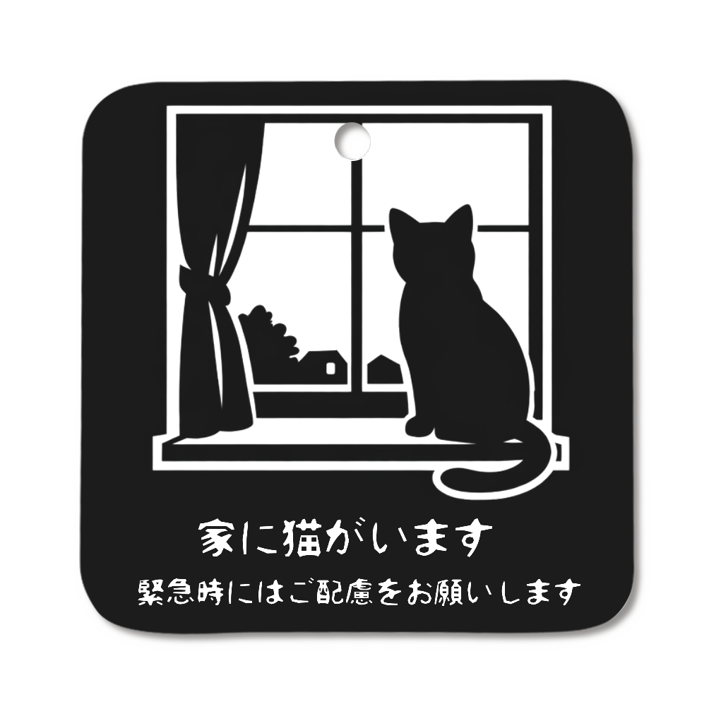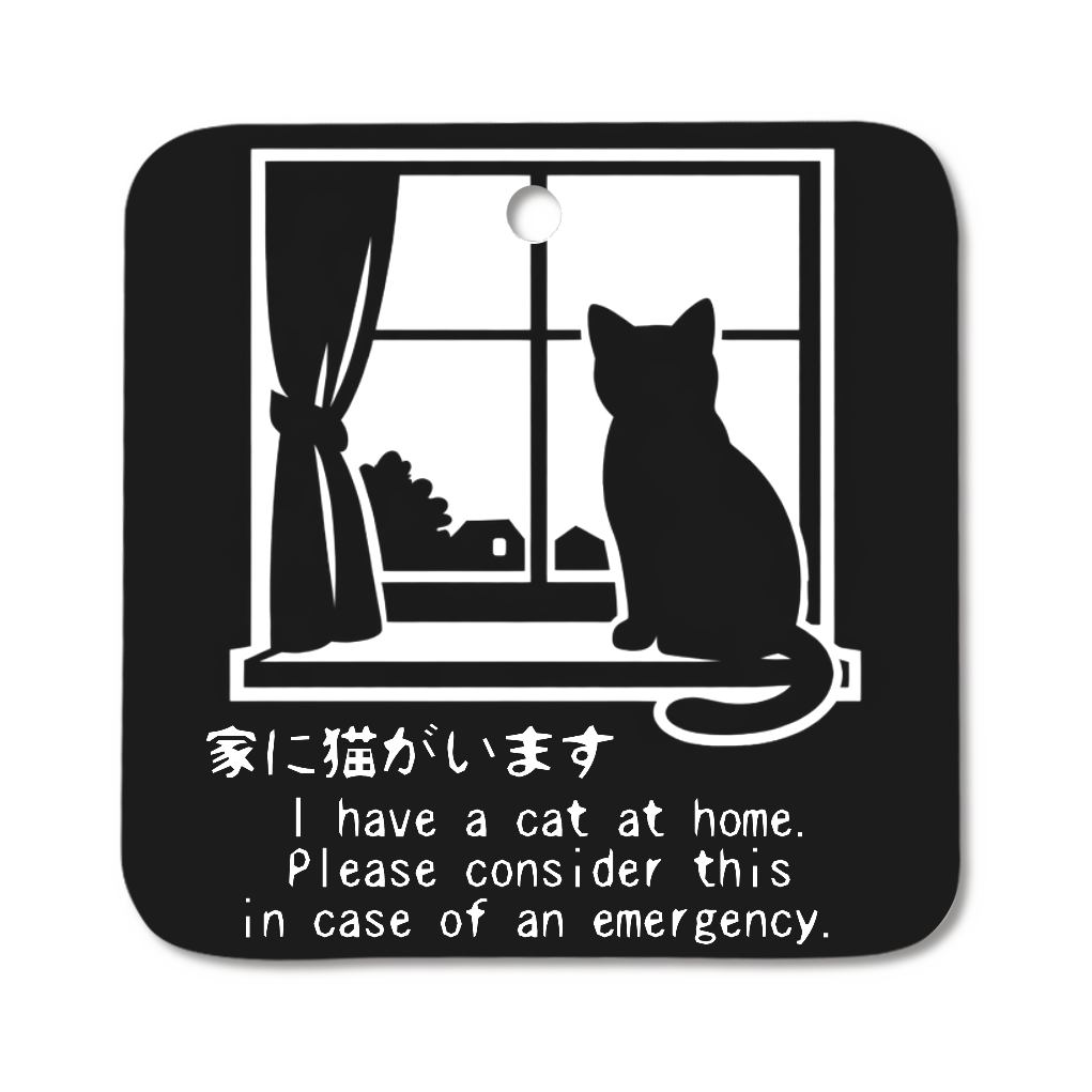 家に猫がいます サインキーホルダー【窓辺の猫】 短毛(日英)