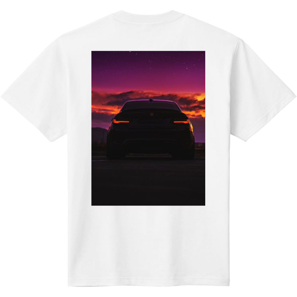 【版画風】自転車柄プリントTシャツ057 定番Tシャツ 白地に黒