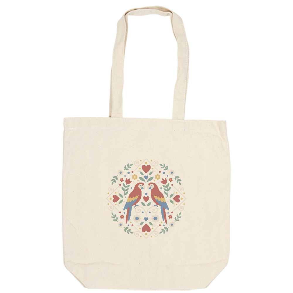 ベニコンゴウインコと花のモチーフ|フォークアート風デザイン