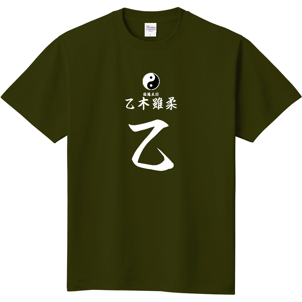 占術Tシャツ 四柱推命 乙木雖柔(白文字 アーミーグリーン)