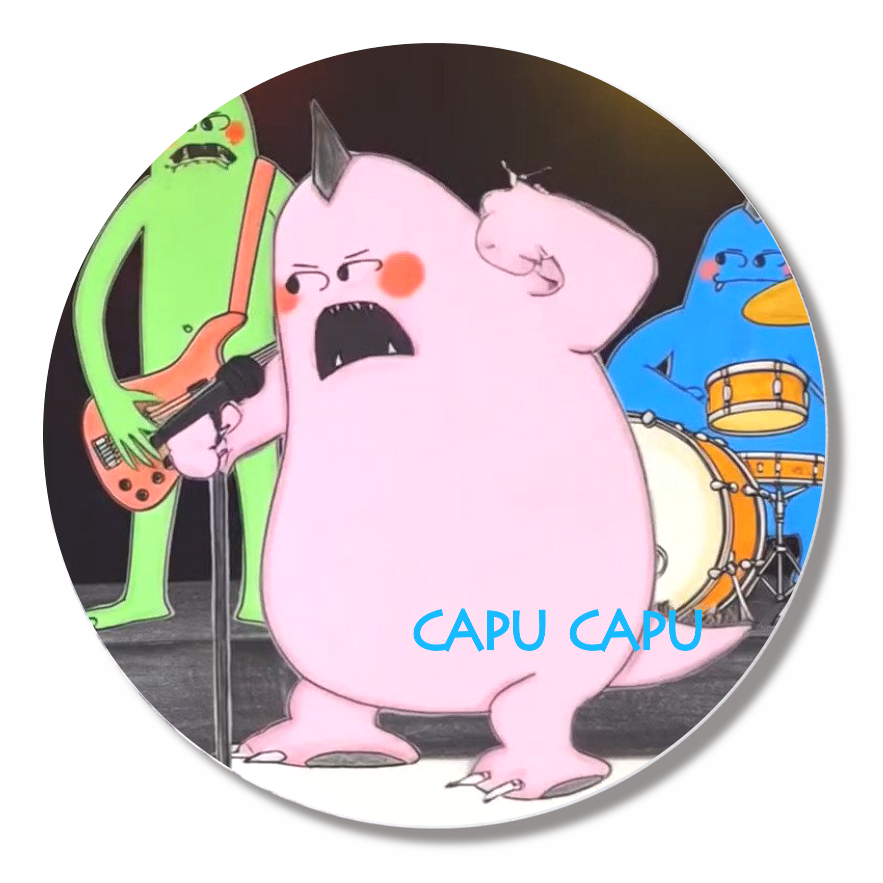 こちらのストアでは、我が事業のマスコットキャラクターであるピンクの恐竜capu capuをバンドメンバーに扮装させてのグッズを中心にバンドグッズも販売しています!