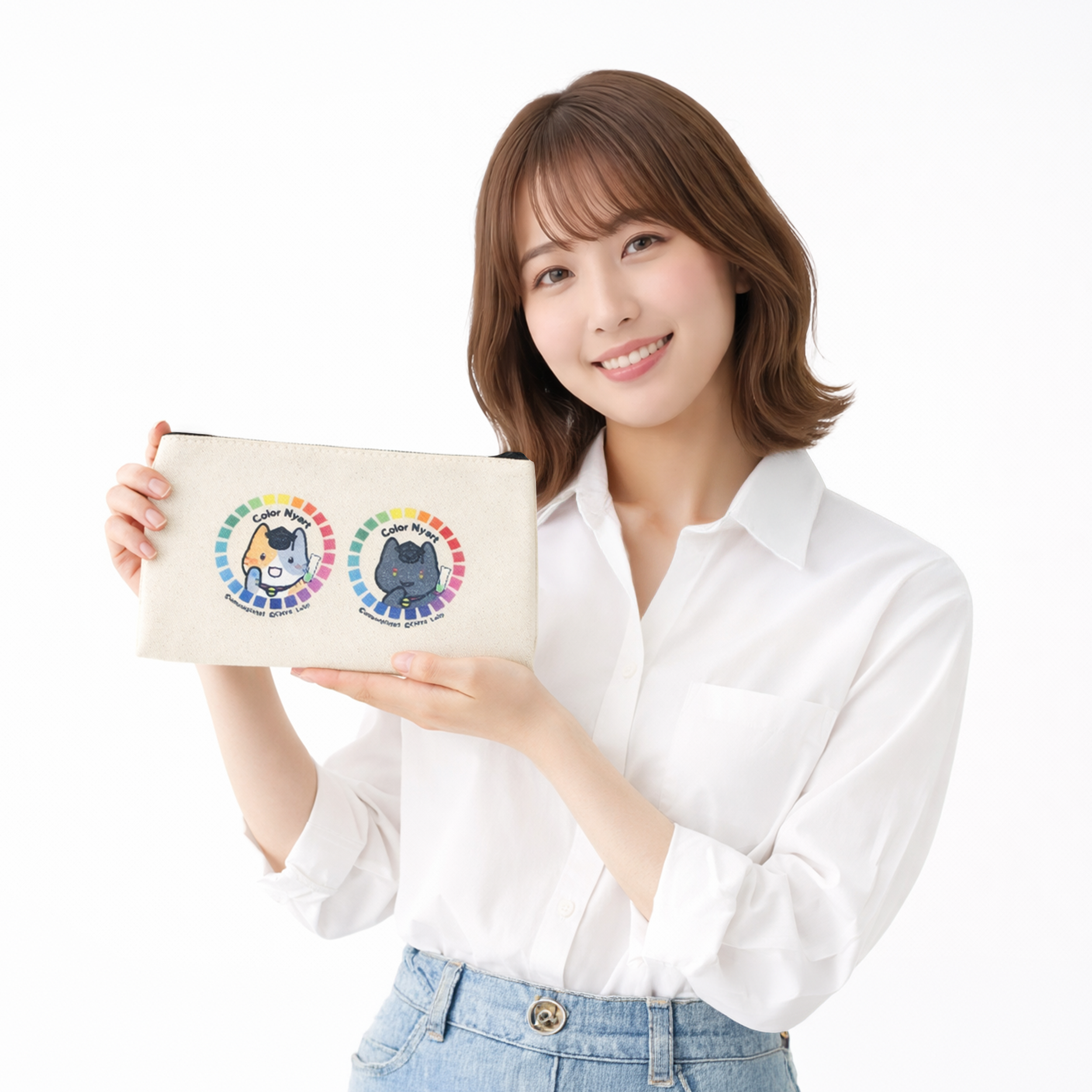 マチなしなのでかさばりづらく、バッグにしまっても邪魔になりません。ポーチには様々な用途があるので、自分用としてだけでなく、プレゼント用やノベルティにもおすすめです。