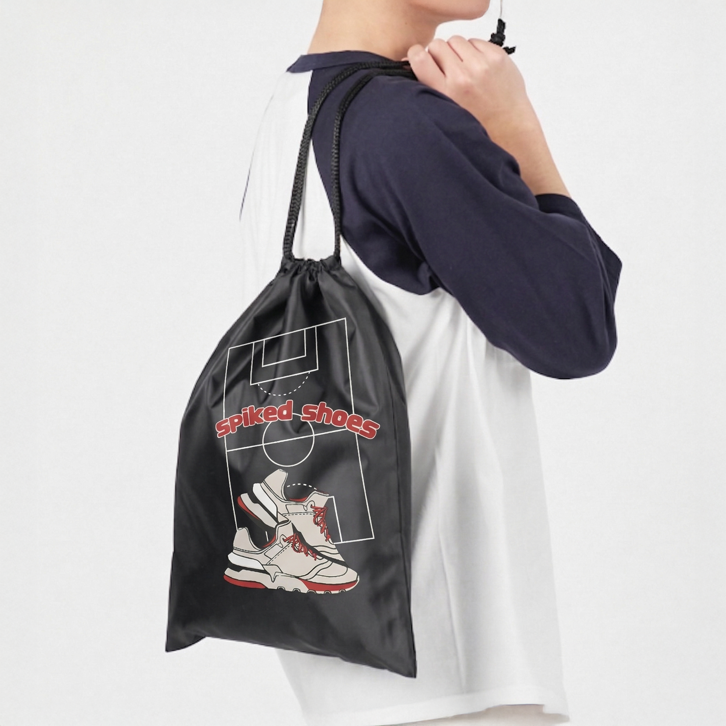 多用途に使えるポリエステル素材の巾着で、スポーツ用品や着替えなどを入れるのに良いサイズ感です。